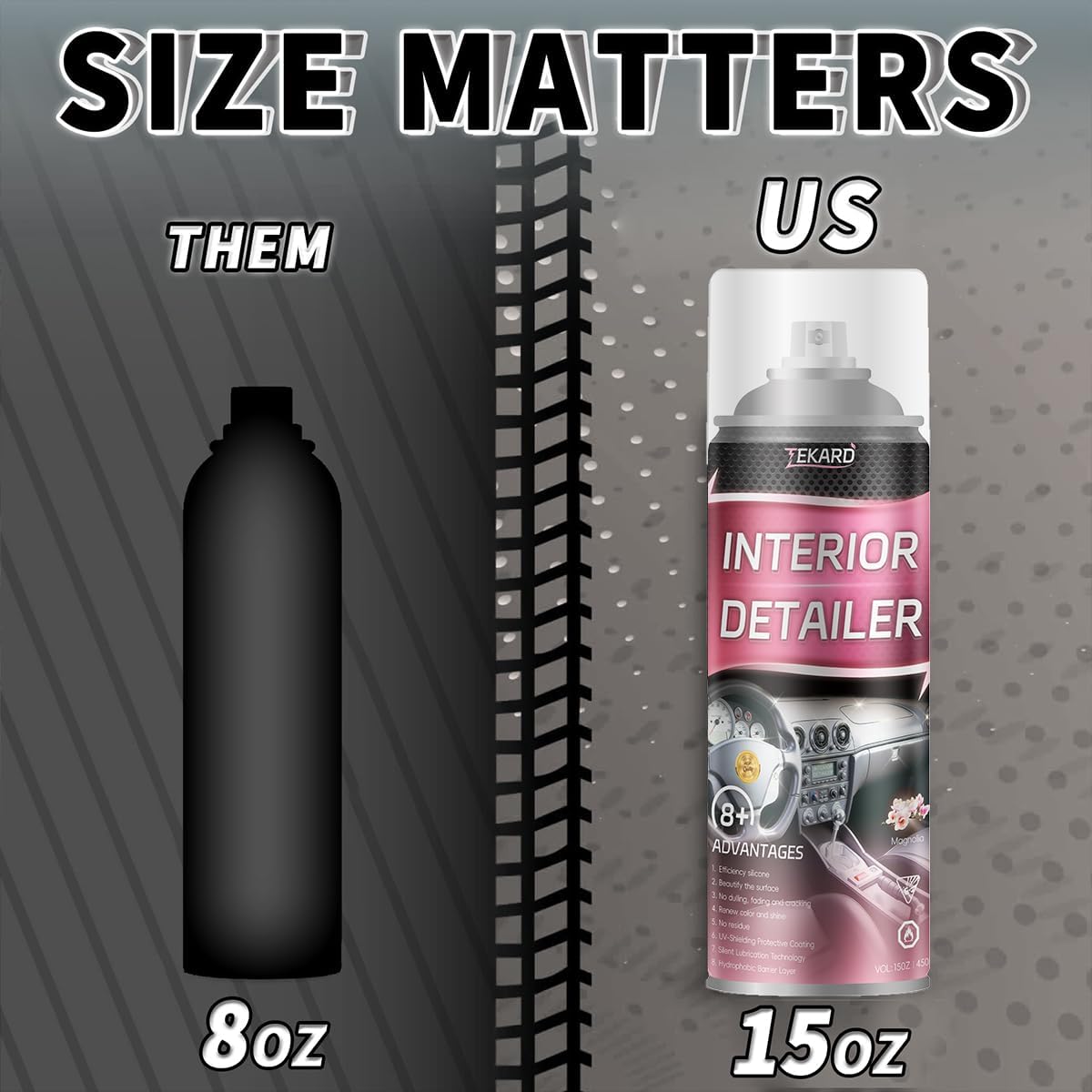 [15oz – Premium Car Cleaner] – Housed in a sturdy 15oz steel canister with exceptional impact resistance,Delivering powerful cleaning performance in a single spray, it cleans and shields your vehicle in one effortless step
