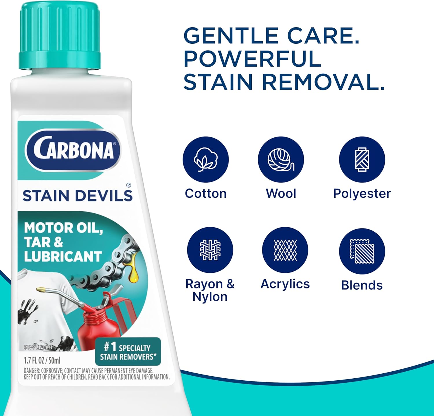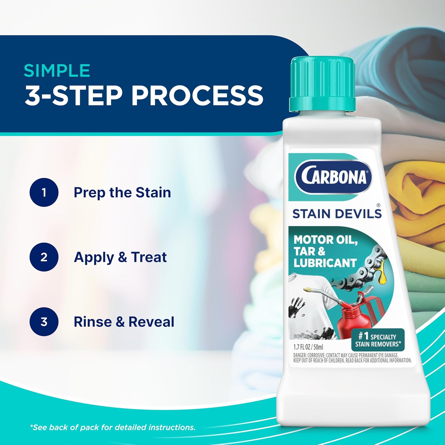 ELIMINATES STAINS: Dealing with a tough stain such as motor oil or shoe polish? Defeat it with an even tougher solution: Stain Devils #7. Put some elbow grease into that oil change and leave the stubborn stains to us! Three 1.7 Fl Oz bottles included.