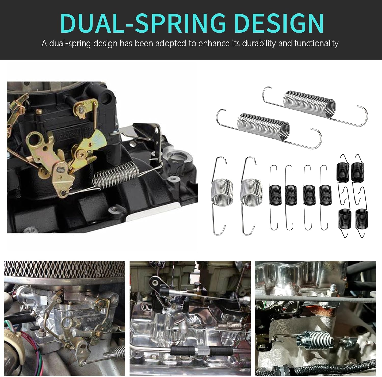 √ Dual-Spring Design: Carburetor throttle return spring kit adopts double spring design which enhance its durability and functionality