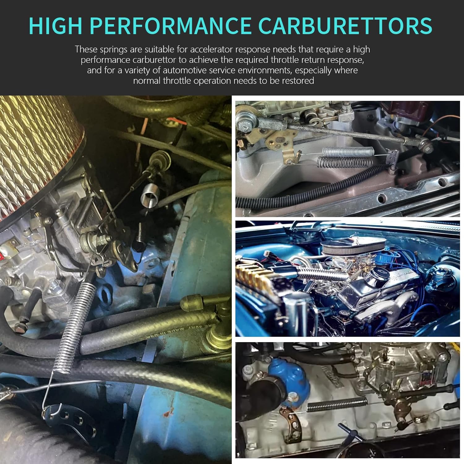 √ High Performance Carburettors: These throttle return springs assortment are suitable for accelerator response needs that require a high performance carburettor to achieve the required throttle return response, especially where normal throttle operation needs to be restored