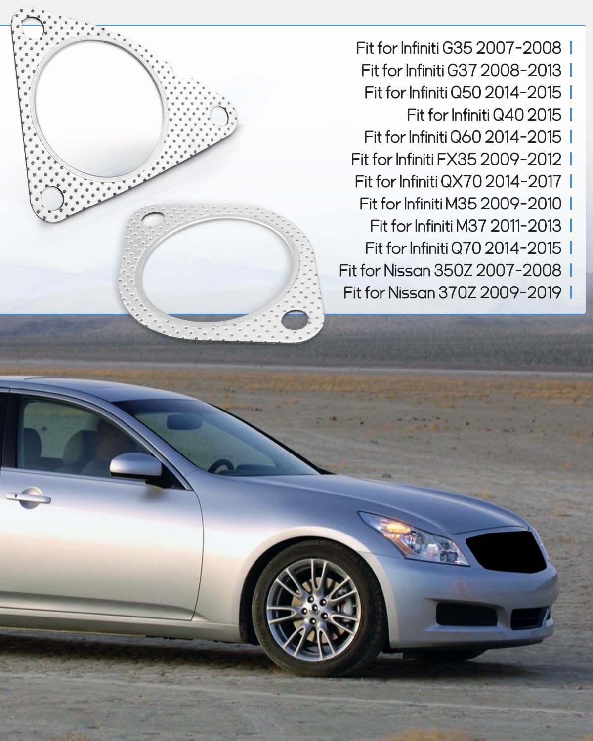 Compatible Models: The catalytic converter gasket bolt fit for Infiniti G35 2007-2008. Fit for Infiniti G37 2008-2013. Fit for Infiniti Q50 2014-2015.Fit for Infiniti Q40 2015. Fit for Infiniti Q60 2014-2015. Fit for Infiniti FX35 2009-2012. Fit for Infiniti QX70 2014-2017. Fit for Infiniti M35 2009-2010.Fit for Infiniti M37 2011-2013. Fit for Infiniti Q70 2014-2015, Fit for Nissan 350Z 2007-2008. Fit for Nissan 370Z 2009-2019
