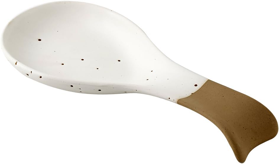 Unique Glaze: This spoon holder features a unique color-blocked design. The natural light brown handle and white glaze are randomly hand-splashed, creating an irregular and arbitrarily unique effect. No two are exactly alike, making it a truly one-of-a-kind kitchen gift. Making your spoon rest a one-of-a-kind addition to your kitchen.