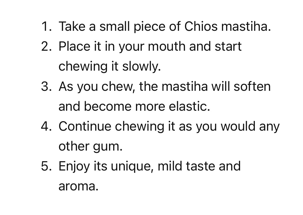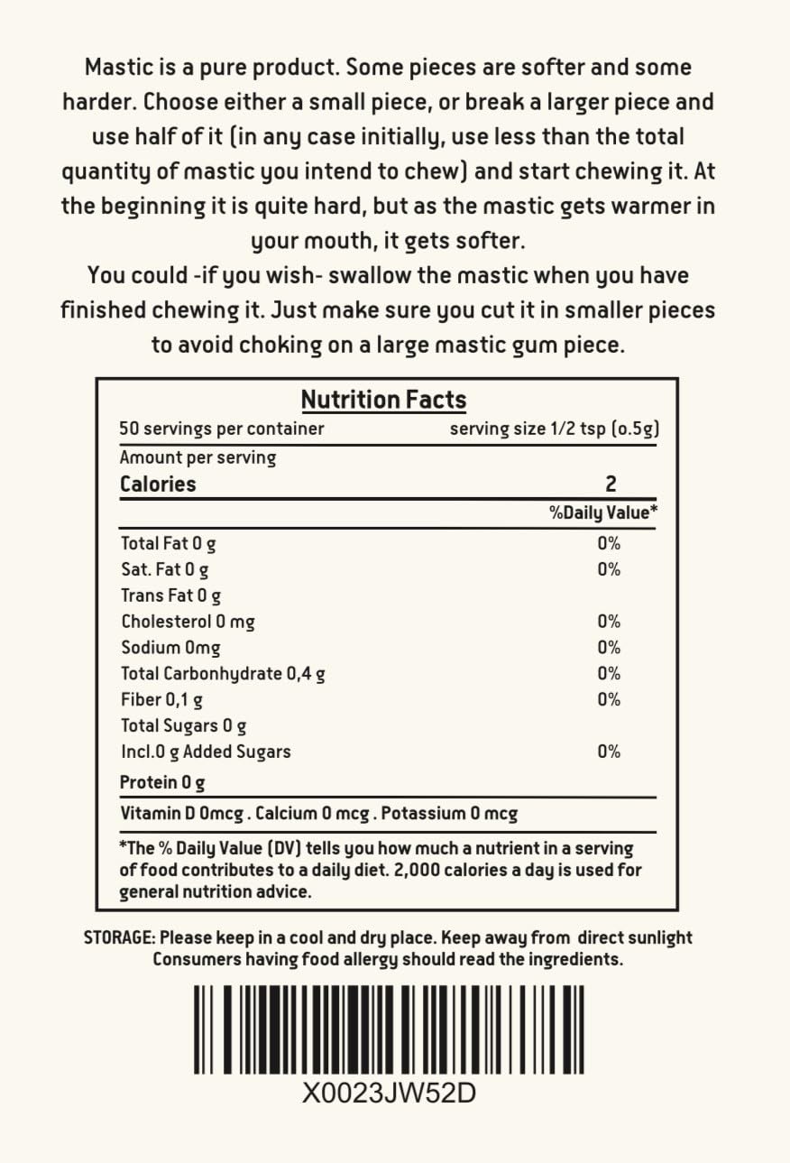 AUTHENTIC CHIOS MASTIHA: 100% natural resin from the Chios Mastiha Growers Association. Hand-picked and cleaned to ensure the highest premium quality from Greece.