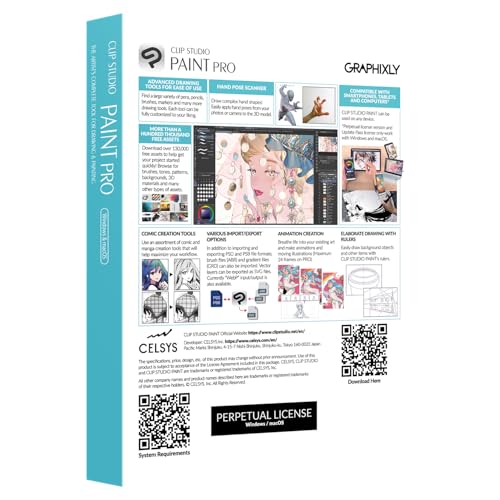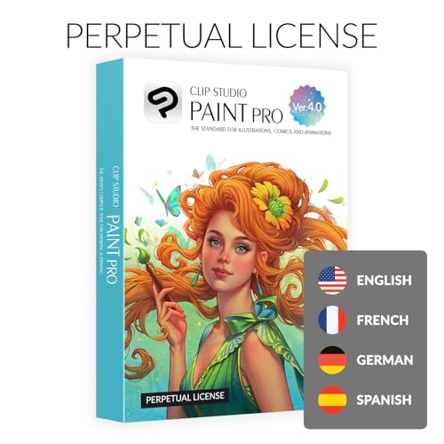 CLIP STUDIO PAINT PRO Version 4 – Perfect for illustrations and concept art with unlimited brush customization. Includes features for manga, comics, and animations up to 24 frames and more!