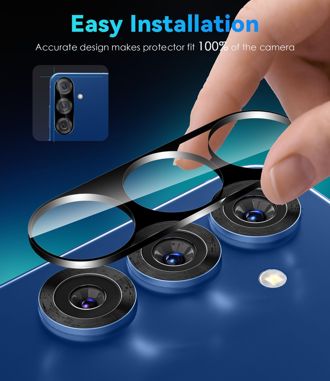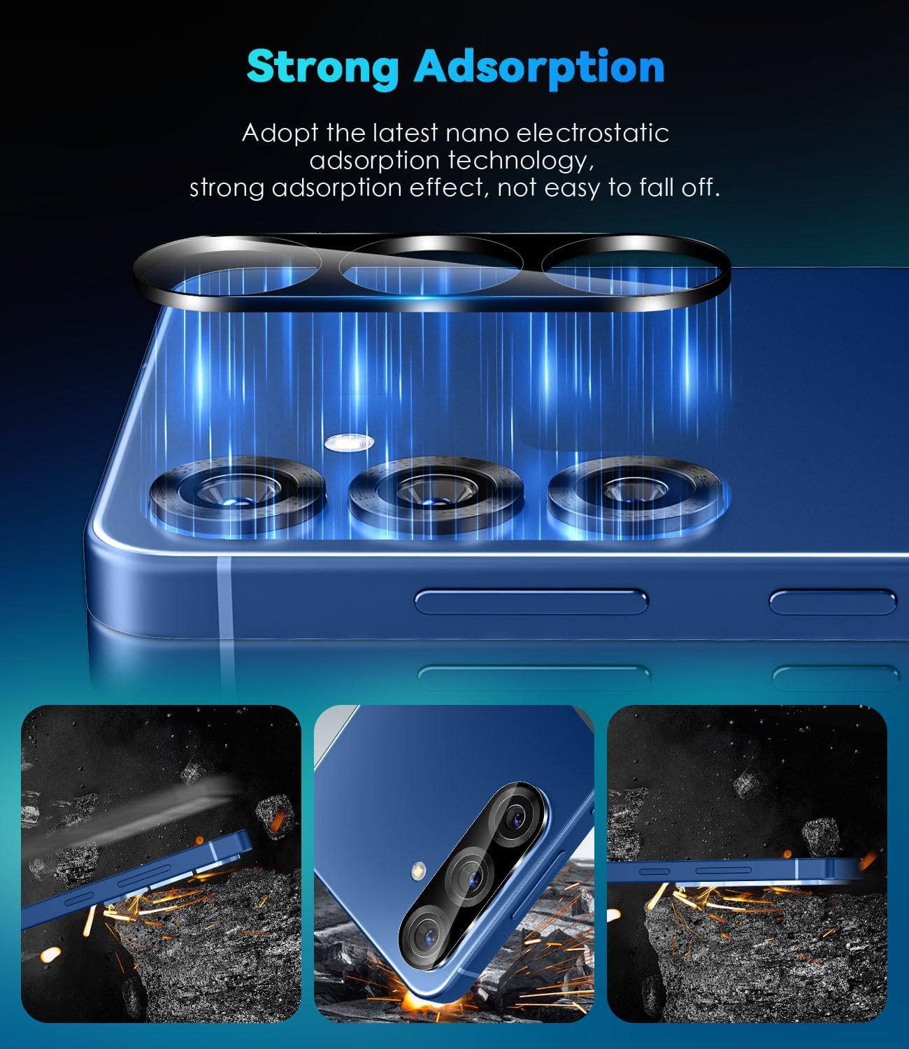 【HD Clear】The camera lens protector has a 99.99% high-definition clear hydrophobic and oleophobic screen coating that protects against sweat and oil residue from fingerprints, providing a clear and clean viewing experience