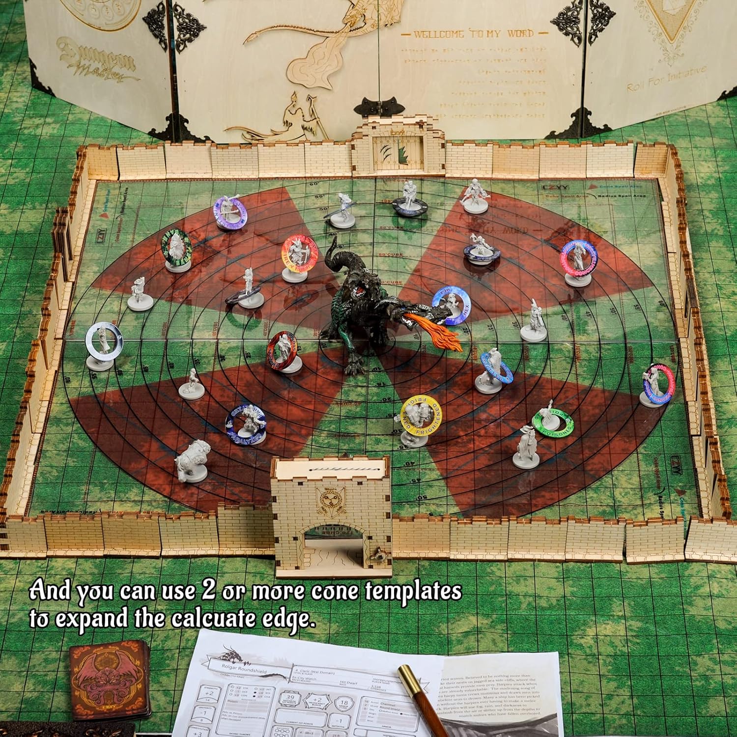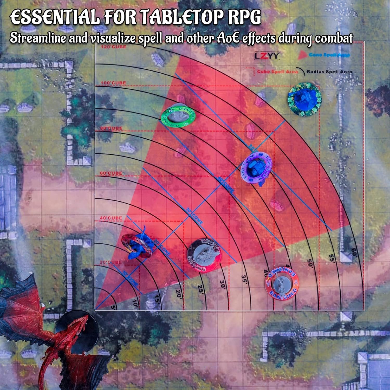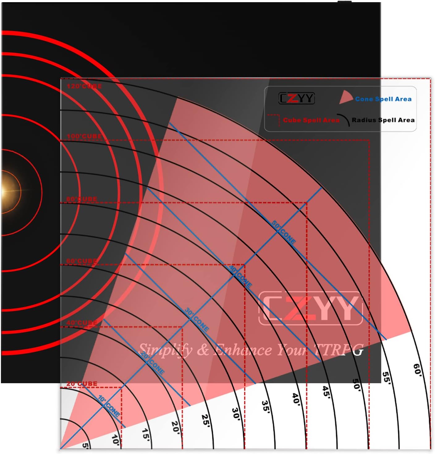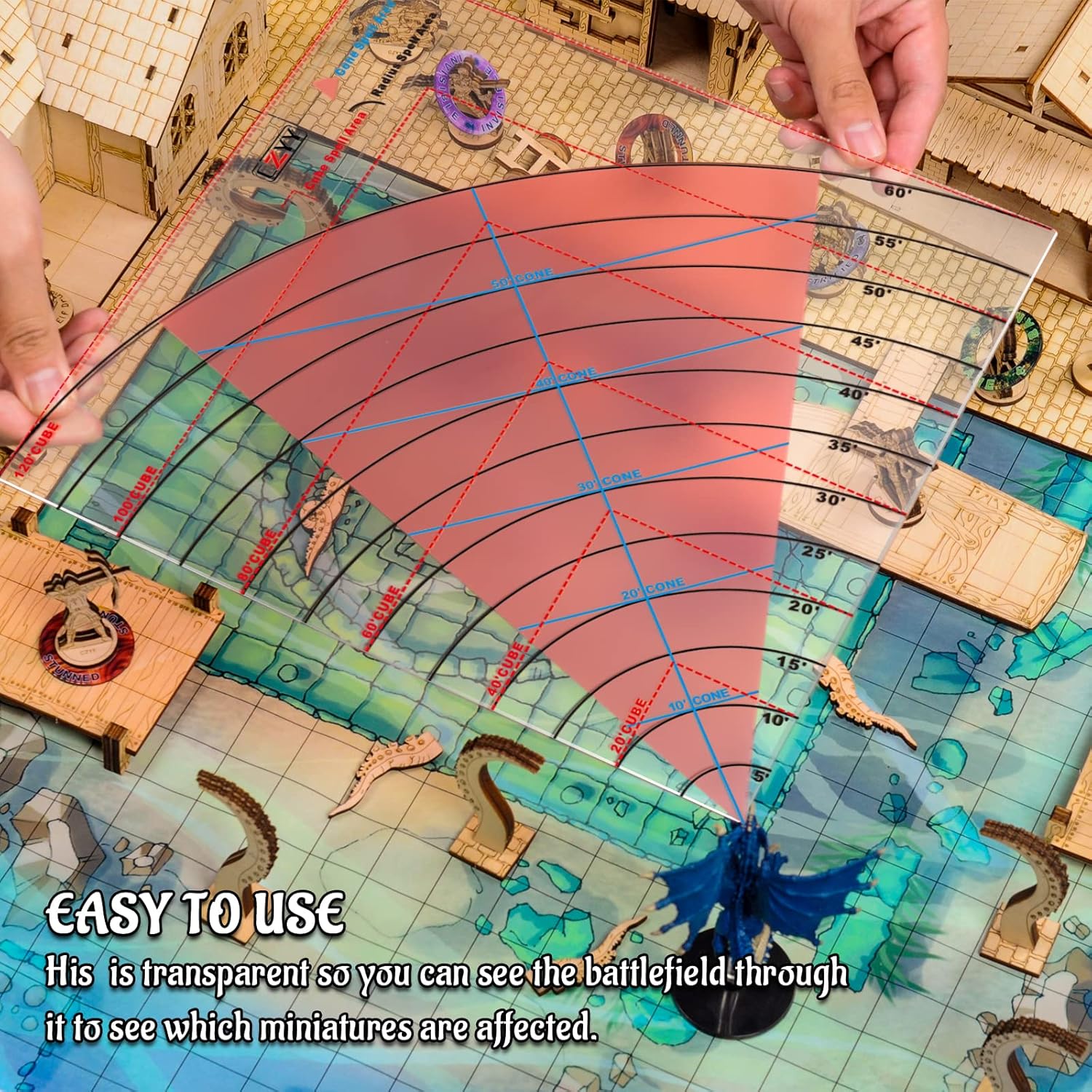 EASY TO USE: This acrylic template is transparent so you can see the battlefield through it to see which miniatures are affected. And you can use 2 or more cone templates to expand the calcuate edge. Take all the guesswork out of AoE, just enjoying fun and happy spellcasting!