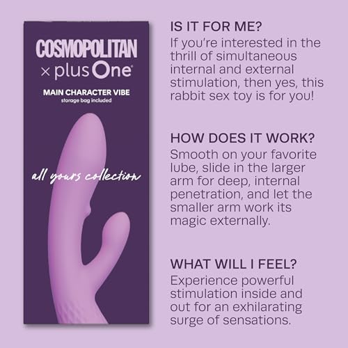 Cosmopolitan X plusOne Main Character Vibe Rabbit Style Dual Bullet Vibrator – G Spot Vibrator Clitoral Stimulator with 10 Modes & 5 Motion Patterns, Waterproof Adult Toy, Sex Toys for Women