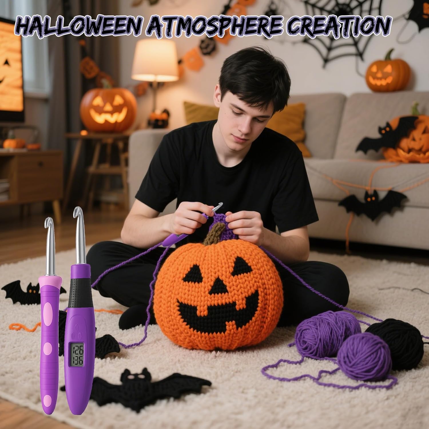 【DIY Holiday Gift】Light Up Crochet Hooks Set with 18 Sizes – Ergonomic LED Crochet Needles for Halloween DIY Decorations & Handmade Gifts, Perfect Thanksgiving Present for Crafters and Holiday Crafting