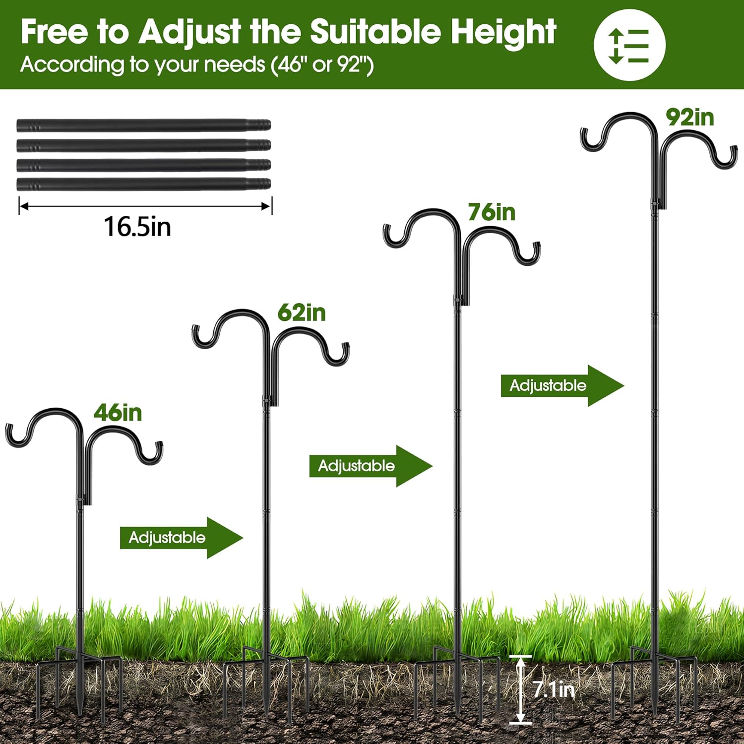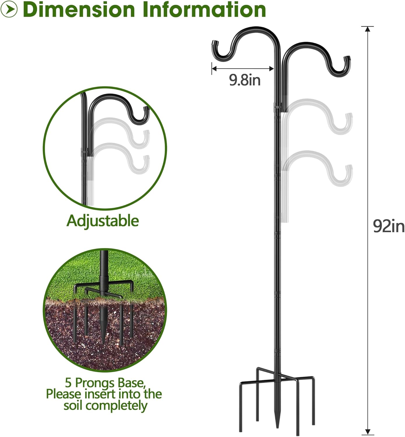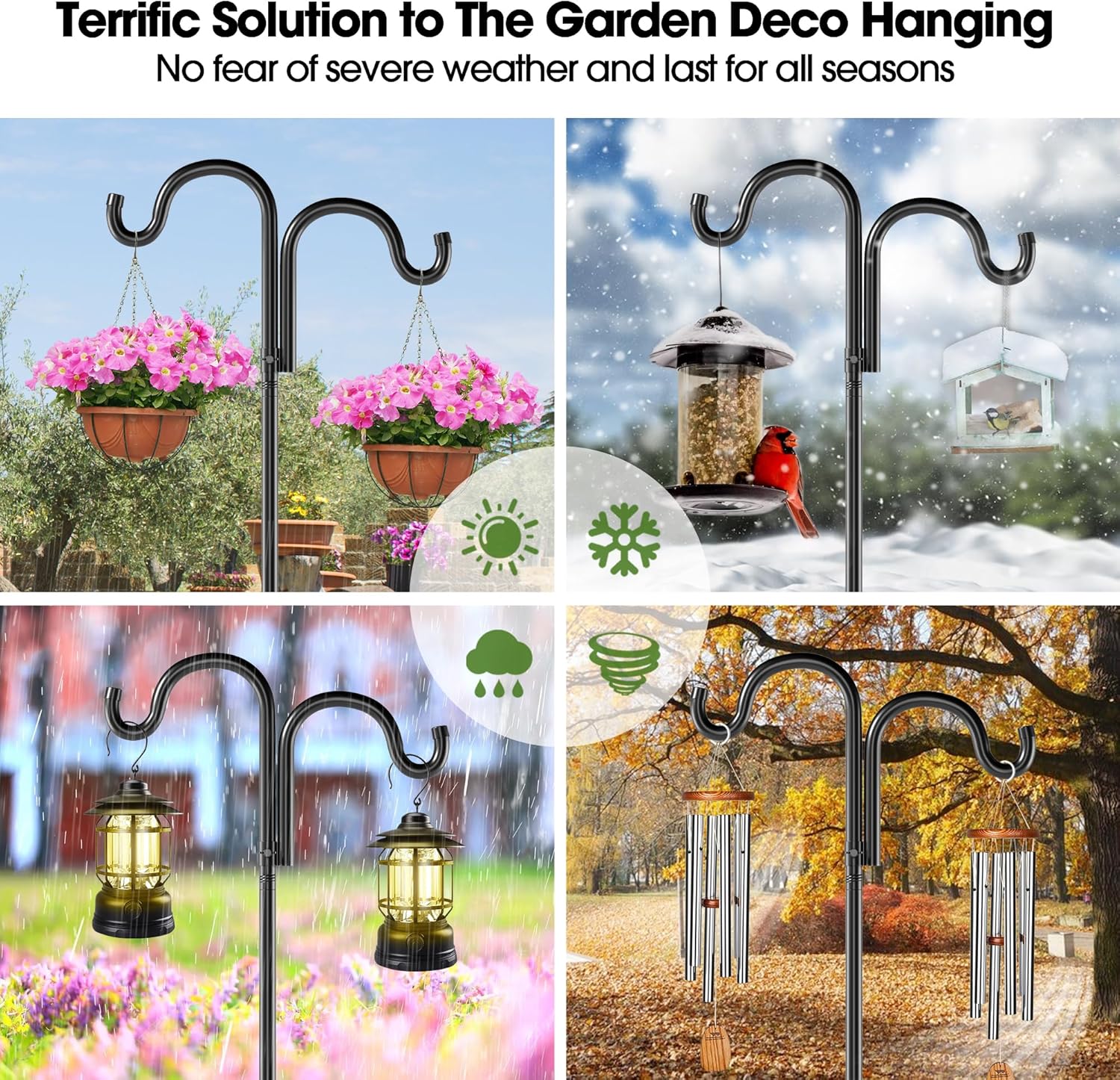 Double the Hanging Space: Our 92″ Double bird feeder stand provide twice the hanging capacity, allowing you to display a variety of outdoor decor, from bird feeders and wind chimes to lanterns and hanging baskets