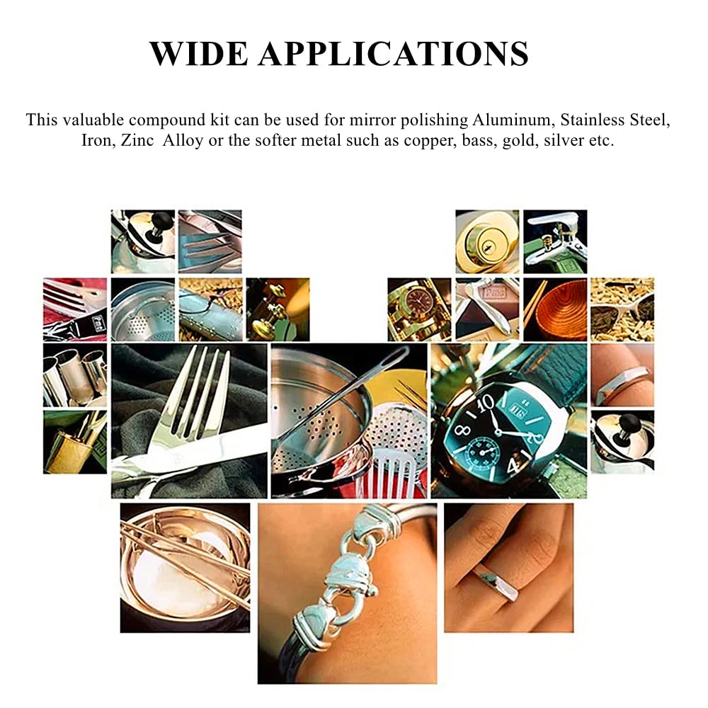 【Functional Polishing Compound kit 】 – These Buffing/Polishing Compounds Kit great for achieve a mirror finish on a wide variety of surfaces. It helps you to get a smooth and burr-free surface for all kinds of Aluminum, Stainless Steel, Plastic, DIY craft projects, appliances, jewelers to a high luster and shine.