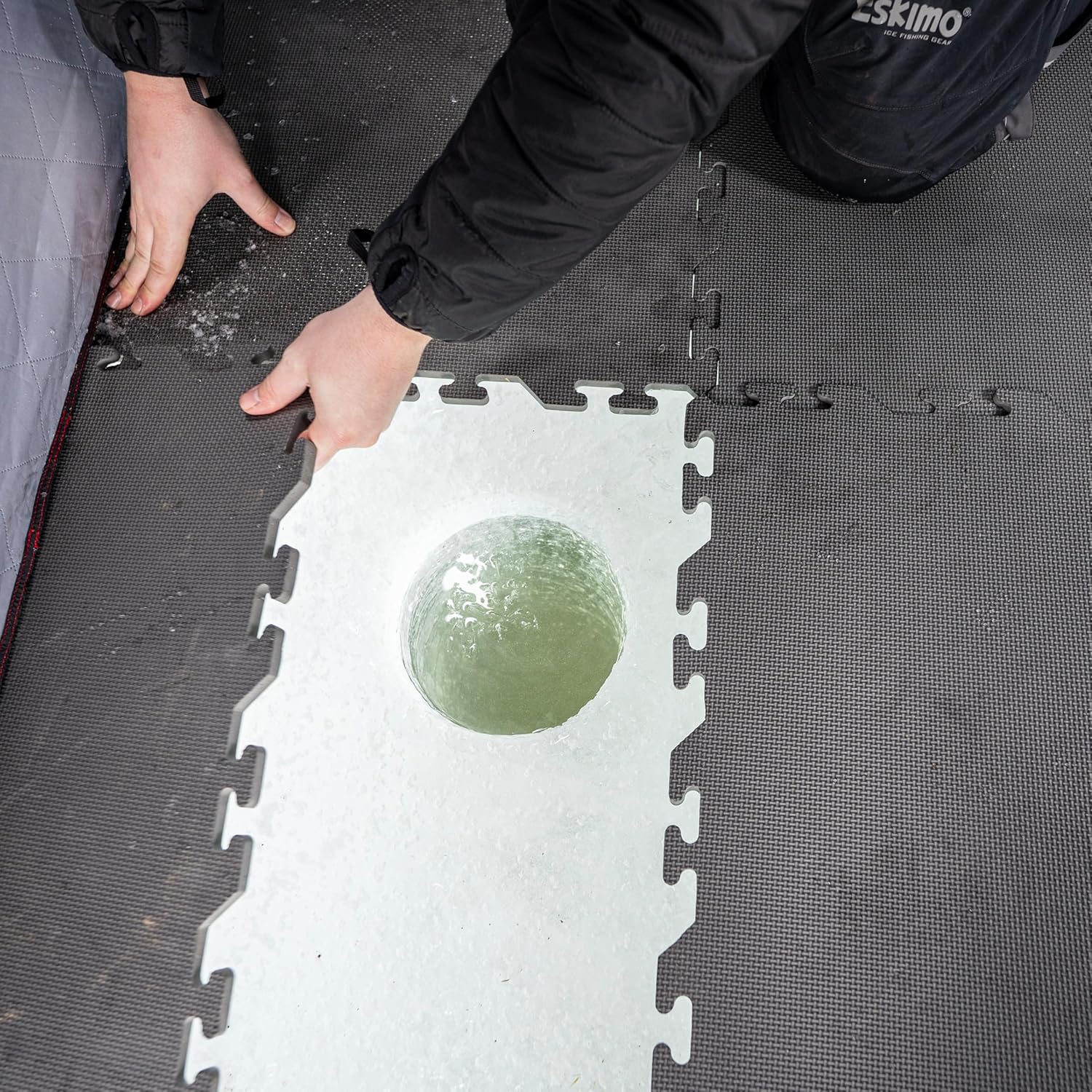 Keep your feet off the ice with a pack of foam tiles for your ice fishing shelter. The ½” thick foam acts as a rigid barrier between you and the ice, ideal for keeping things warm and dry. The kit includes three full-sized square tiles, and two half-sized rectangle tiles for a full setup size of 16 square feet. The interlocking, puzzle-style contact points between each floor tile allow for a wide range of layout options, with as many or as few Eskimo floor tiles as you’d like. Half-size tiles are intended to provide the option to open up a segment of floor space for fishing holes, wherever you’d like them to be inside your shelter.