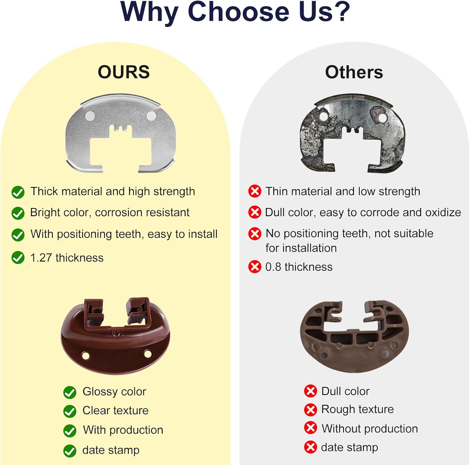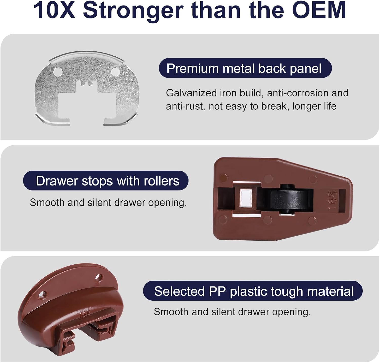 【Industrial-Strength Durability】Upgrade flimsy OEM parts with drawer guides built to last. Made from high-quality PP hard plastic and galvanized iron drawer track back plates, these bottom mount drawer slides resist corrosion, rust, and wear. The reinforced metal caps add sturdiness, making them 10x stronger than plastic drawer slides—ideal for heavy-duty drawer hardware in kitchens, offices, or trucks.