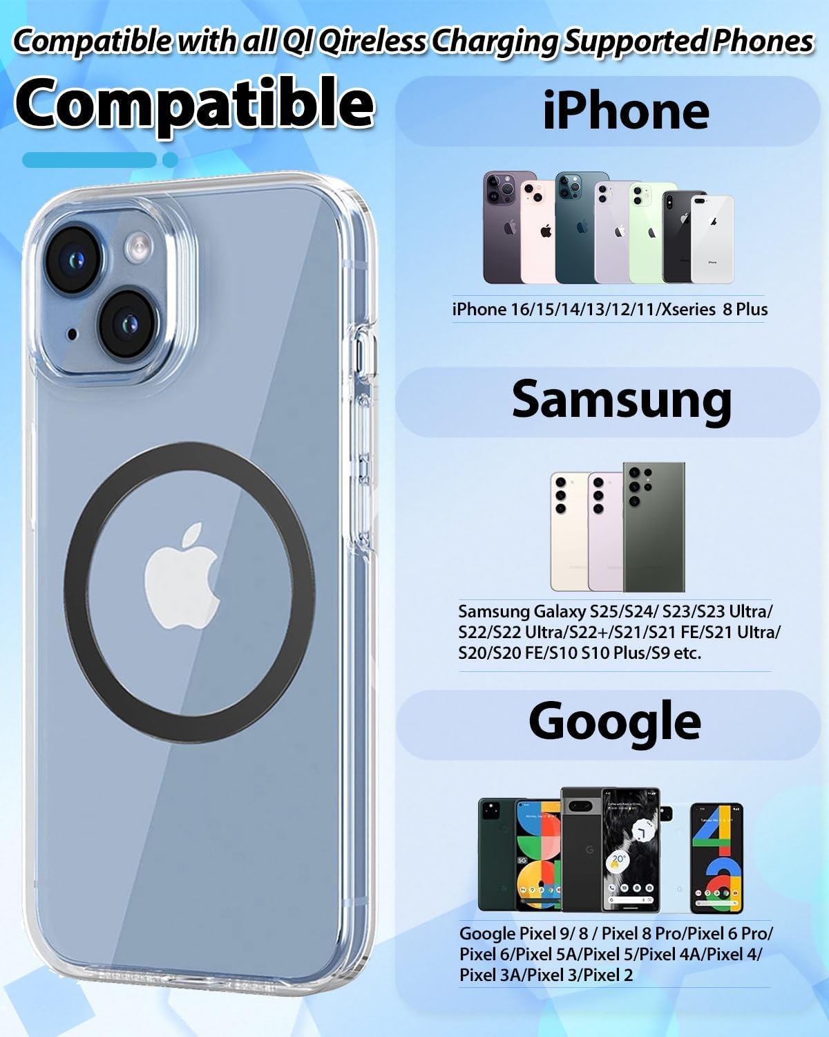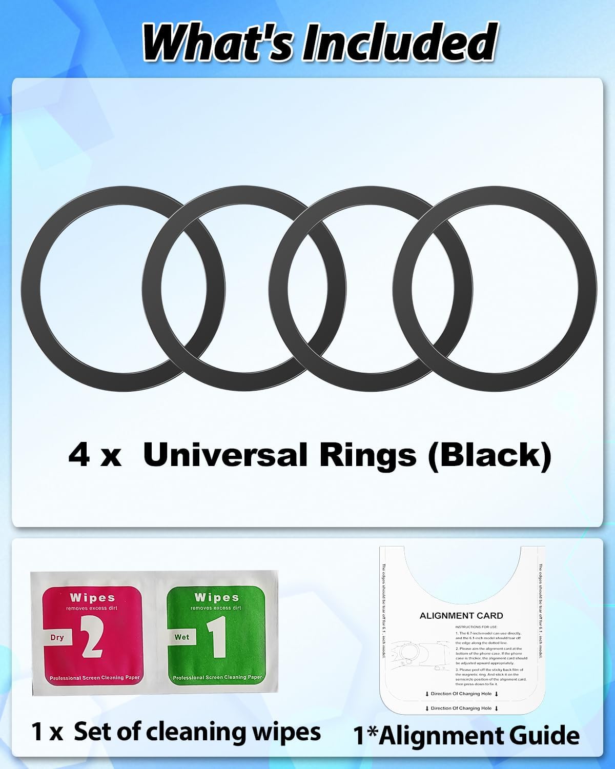 [Easy Installation]This magnet ring set come with alignment guide,makes it a breeze to correctly position the magnetic ring on any of the compatible models,designed with 3M adhesive which could quickly be iphone magnetic ring for phone case ❗❗❗Note: Ensure that the installation surface is clean and dry before applying the metal ring. Choose the optimal location for a seamless fit with wireless charging.