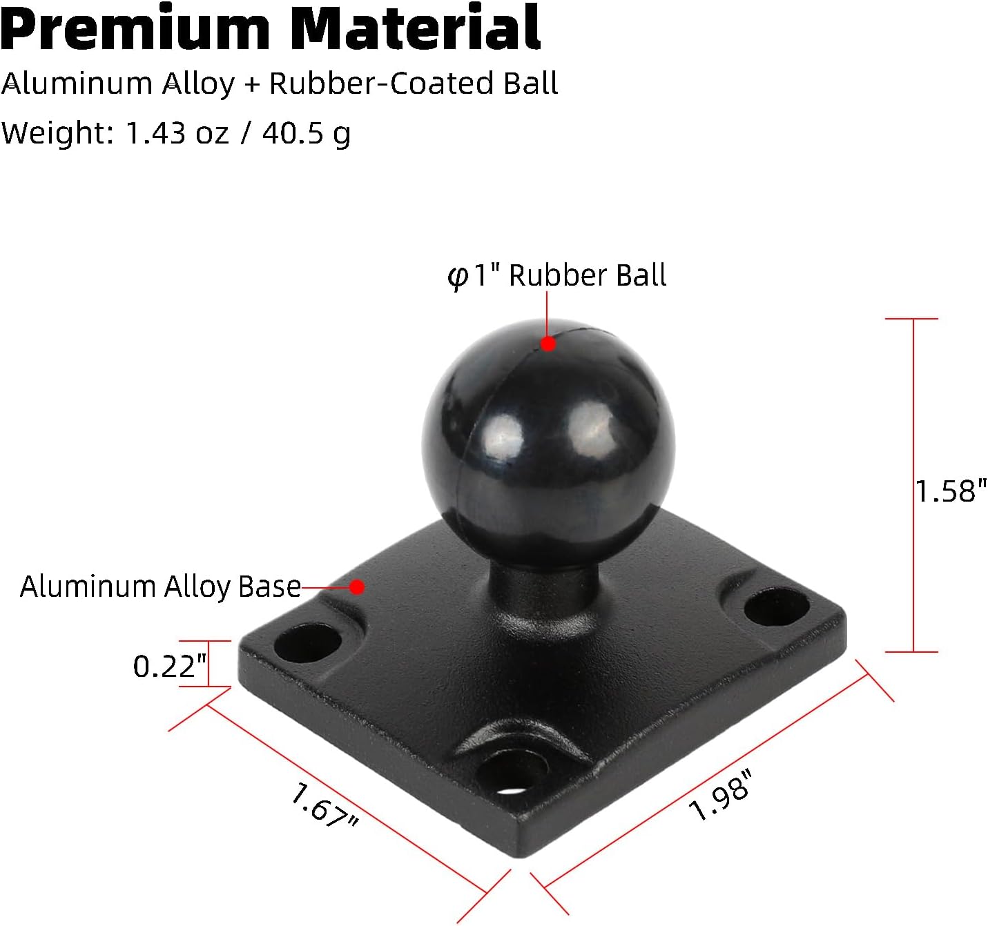 Premium Aluminum Alloy Construction: Crafted from high-strength aluminum alloy, this base offers exceptional durability, corrosion resistance, and long-lasting reliability, even in demanding environments. The 1-inch rubber-coated ball head ensures superior grip, provides shock absorption, and prevents slipping for a rock-solid hold.