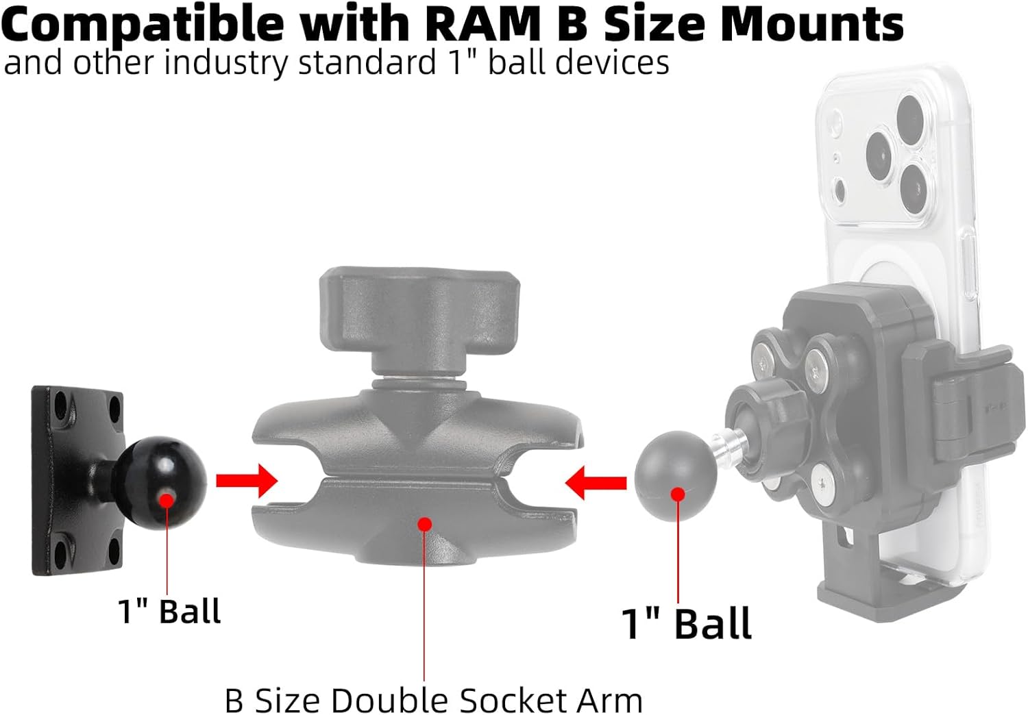 Broad Compatibility: Compatible with RAM Mounts B-Size Double Socket Arms and other standard 1-inch ball B-size components. This versatility makes it an ideal upgrade or replacement part for your existing setup.