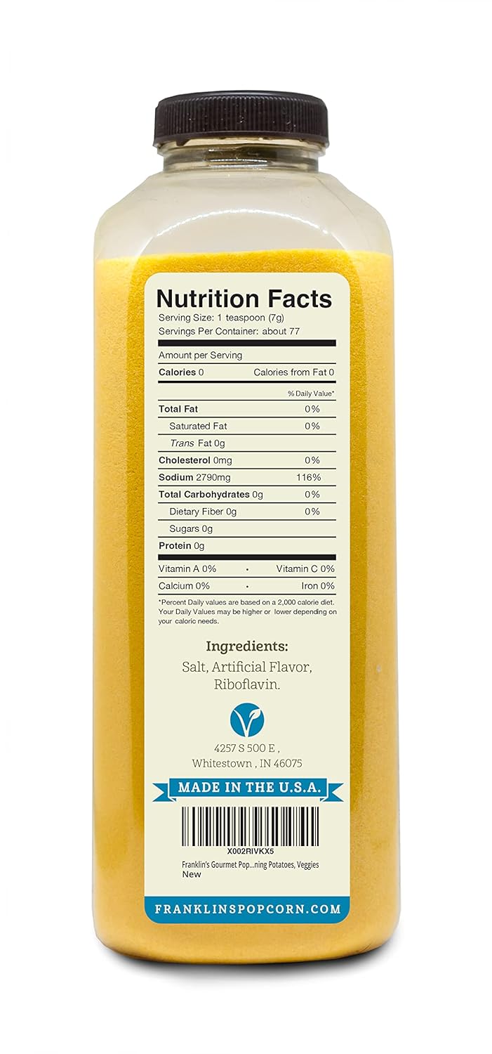 Vegan and Kosher Salt: At Franklin’s, we believe in quality, healthy snacks, and the customer first so we sourced our products to have all-natural ingredients that are vegan, kosher, gluten-free with ZERO trans fats. Franklin’s popcorn salt shaker will complete your healthy popcorn cravings