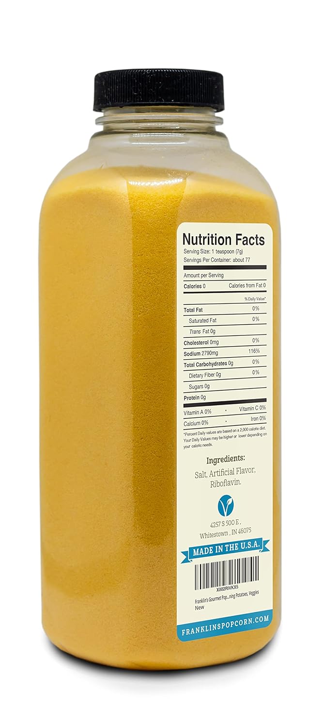 Multi-Purpose Butter Flavoring: Our unique butter flavored salt isn’t just for popcorn toppings seasoning. It can be used as salt substitute for a variety of other foods. Use Franklin’s butter salt for meats, potatoes, eggs, veggies, and much more