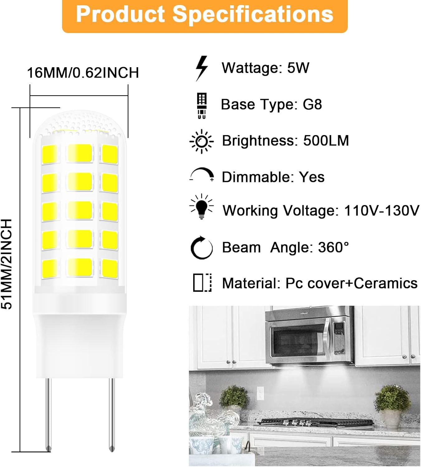 Save up to 90% on your energy bill by replacing 50 watt GE/ Samsung/ LG microwave oven light bulb with Gaormii 5w G8 led bulb. Dimmable and work with a high/low light setting.