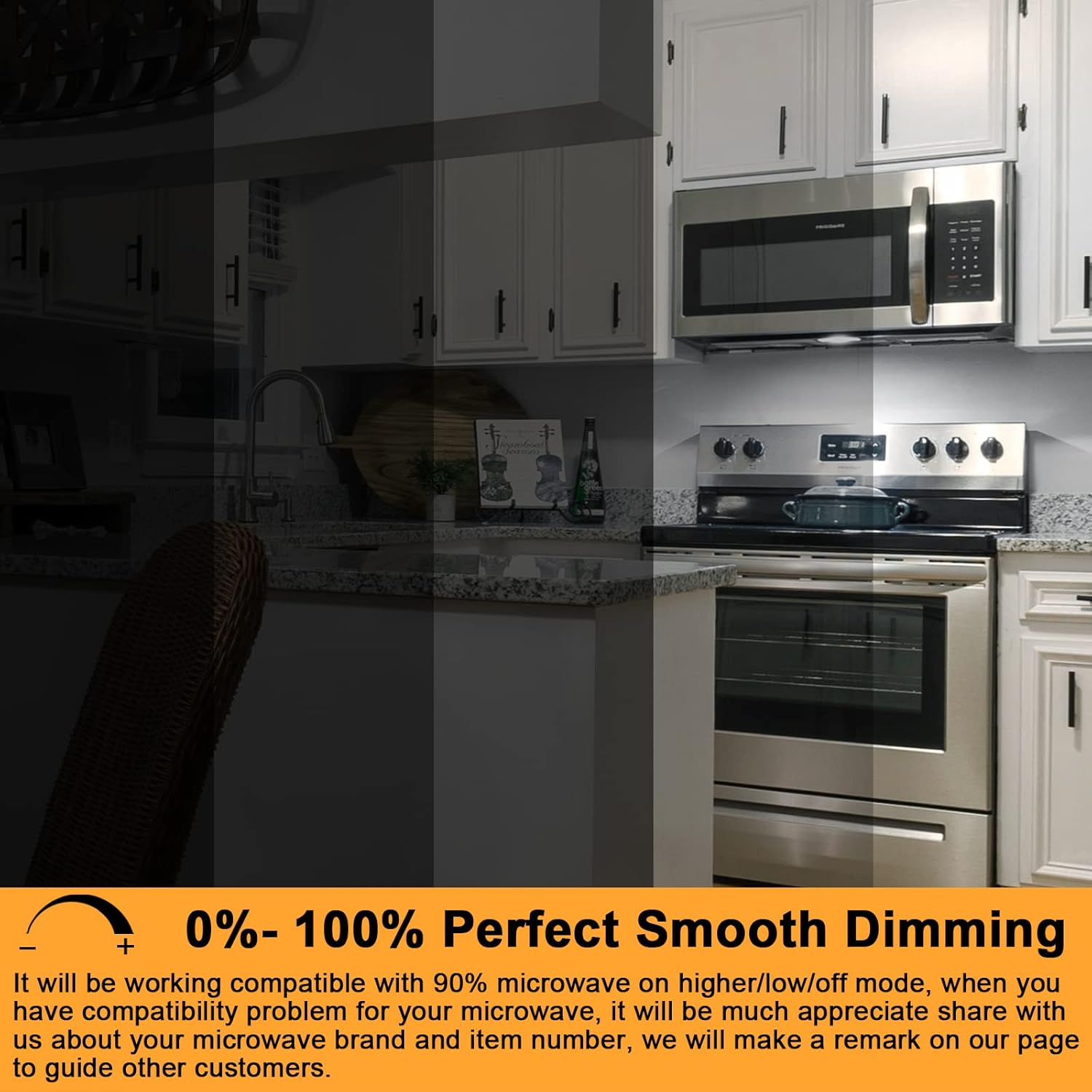 Easy to install, Instant on, No flicker, CRI 85, present object color vividly and clearly; Daylight color temperature provides very bright light, proper look to food when cooking.