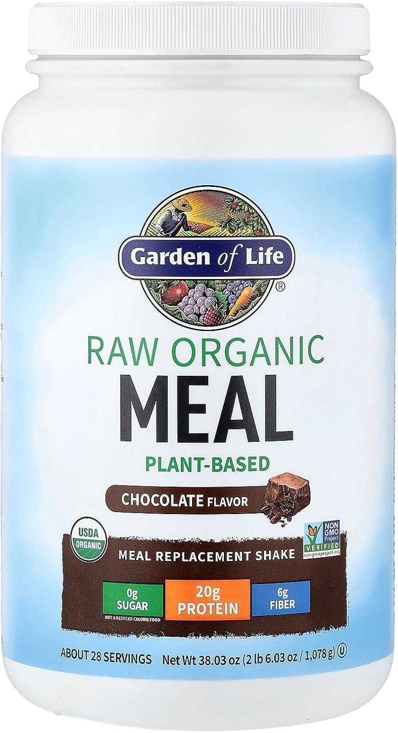 Garden of Life Raw Organic Meal Replacement Shakes provide an excellent protein meal replacement shake that is both nutritious and delicious. This all-in-one, low calorie protein powder offers 20g of high protein shakes per serving, made from pea protein powder organic ingredients. Great for any time of the day, it leaves you feeling full and satisfied, with 6g of fiber and only 150 calories per serving. Say goodbye to chalky shakes and hello to downright delicious flavor with this protein powder chocolate variant. It mixes effortlessly with water, blends seamlessly into smoothies, and even enhances baked goods. Raw Organic Meal Replacement Shakes are made to provide great texture and mixability. They are packed with organic peas, sprouted grains, seeds, and legumes, along with essential whole food vitamins and minerals, making it an outstanding option as a protein powder for women or men. This protein powder for men and women is produced at low temperatures to preserve nutritional integrity, designed for you get the most out of every scoop. It includes digestive enzymes like lipase, lactase, and papain, along with live probiotics for digestion and proper absorption.Raw Organic Meal is a great choice for those who seek highly nutritious meal replacement & protein drinks. Adults can mix 1 scoop with 8oz of water or plant milk, while parents should consult with their child’s pediatrician or nutritionist for additional protein needs. Savor the balanced nutrition and convenience of our protein powder vegan option as part of your daily routine. †These statements have not been evaluated by the Food and Drug Administration. This product is not intended to diagnose, treat, cure or prevent any disease.