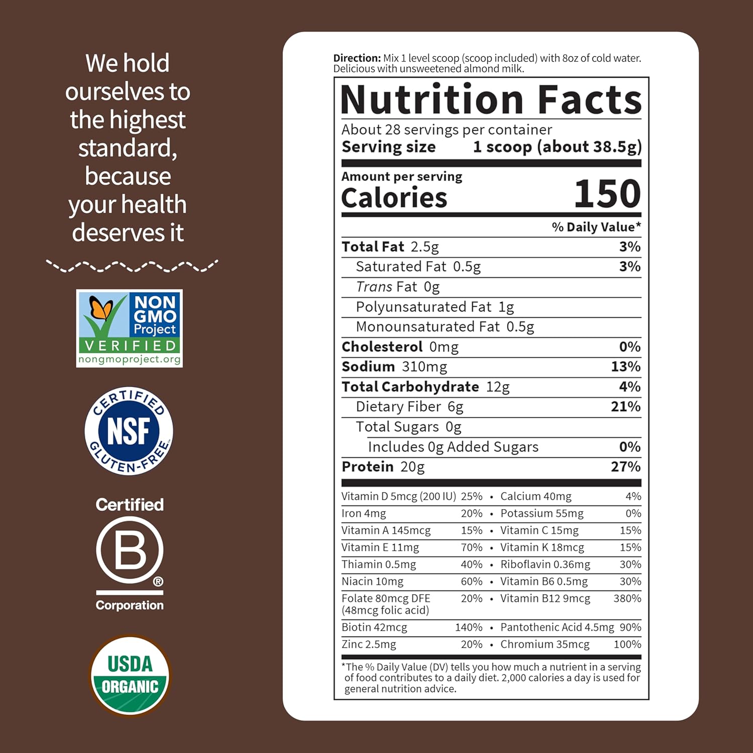 EXTRAORDINARY STANDARD: Our organic vegan protein powder is not only delicious but is supported by Third-Party Certifications — Certified USDA Organic, Non-GMO Project Verified, Vegan, Kosher, NSF Certified Gluten Free and NSF Contents Certified