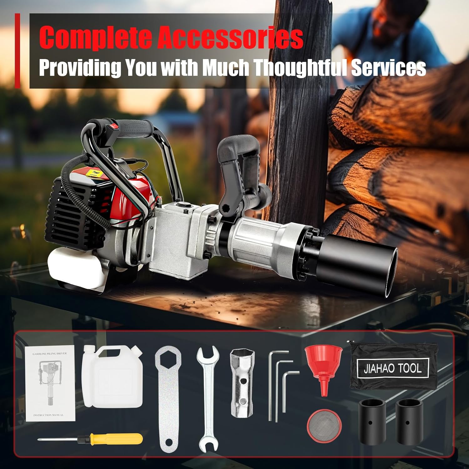 【Complete Accessories】: In addition to a post driver, our package also prepares different sizes of post sockets, an oil-mixing kettle, a tools kit, and other components and parts that you may need in your work, providing you with more thoughtful services.