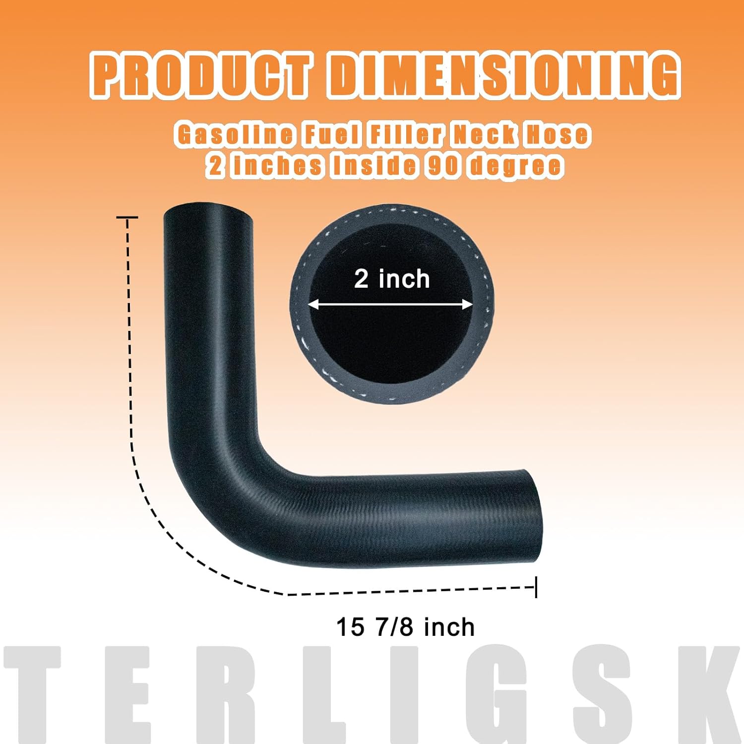 Plenty Long Enough:Provided the length required for the extension from the tank to the filler cap;15 7/8″ Long x 2″ Inside diameter 90 degree fuel filler neck hose(measure your old item to assist with the new one)