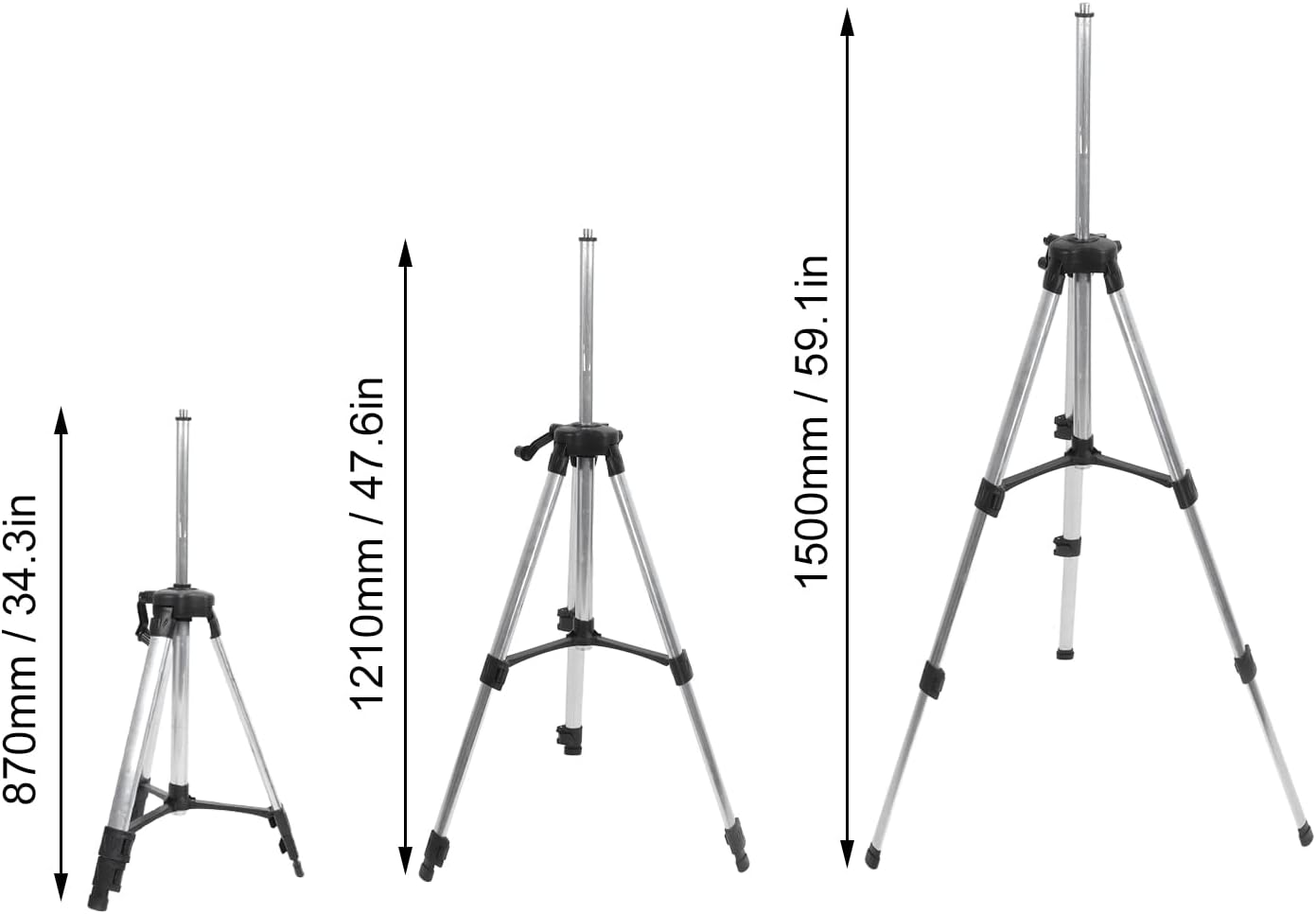 【Adjustable Height】Offering a 59.05 inch height range, the tripod starts at 21.8 inches with the legs collapsed and reaches 59 inches when all three legs are fully extended. Once you have the legs where you need them, you can lock them in place using the heavy-duty, locking clamps.