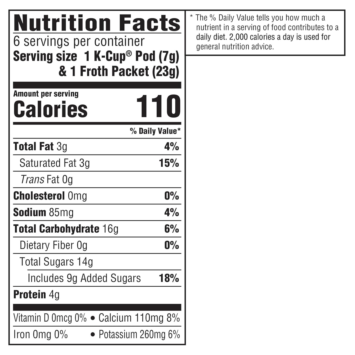 Awaken your inner barista in two simple steps with our Gevalia Frothy Artificially Flavored Caramel Macchiato Espresso Style K-Cup Coffee Pods & Froth Packets Kit. Whip up a creamy, buttery and sweet artificially flavored caramel macchiato at home with our convenient kit. Our 100% Arabica beans are carefully slow roasted and snap cooled for a full-bodied espresso style coffee. Our coffee is then blended with a rich froth made from real milk for your enjoyment. Our single-serve caramel macchiato pods are compatible with all Keurig brewers. To prepare, first empty the latte froth packet into a mug and place it on your brewer’s cup stand. Next, insert the K-Cup pod and brew using the 8-ounce setting. Stir, sweeten as necessary and enjoy! Each box contains 6 single-serve espresso style K-Cups and 6 artificially flavored caramel macchiato froth packets. Founded in 1853 in Sweden, Gevalia is renowned for quality and craft. With Gevalia, you can skip the long lines and enjoy the perfect espresso style coffee drink in the comfort of your own home.