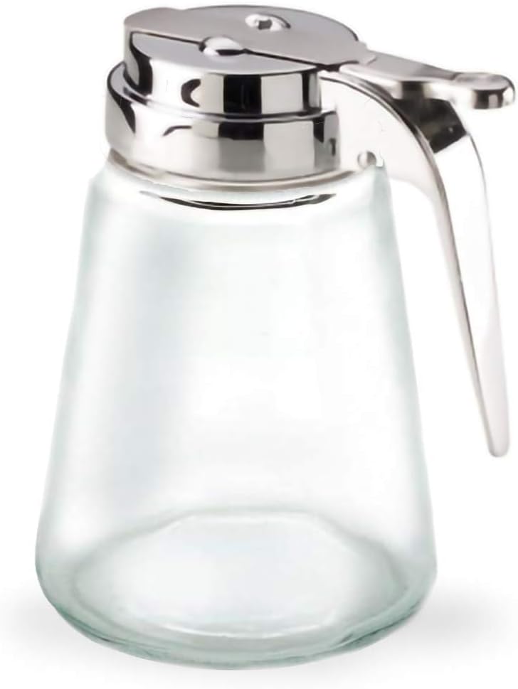 Classic Diner Style Glass Jar Pancake Syrup Dispenser Ideal for maple syrup, honey, dressings, and creamer!