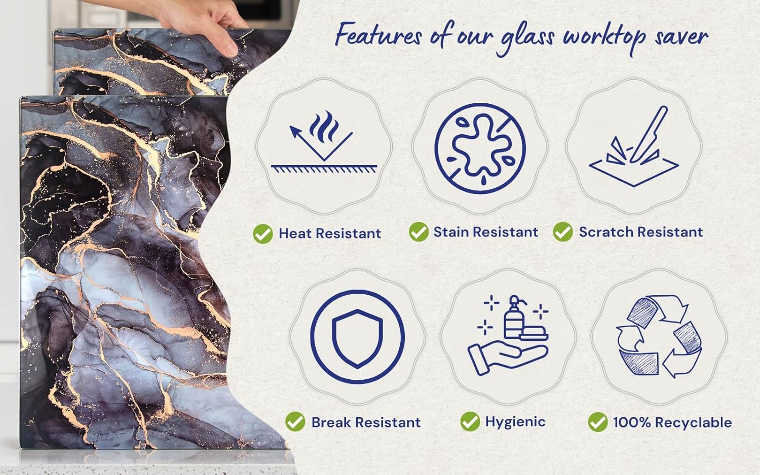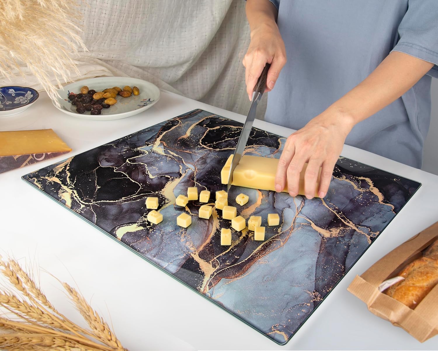 Yes! This glass cutting board is crafted from heat-resistant tempered glass, able to handle temperatures up to 250°C. Place hot pots, pans, or freshly cooked meals on this worktop saver without worrying about damage to your countertops—perfect for busy kitchens that need both functionality and style.