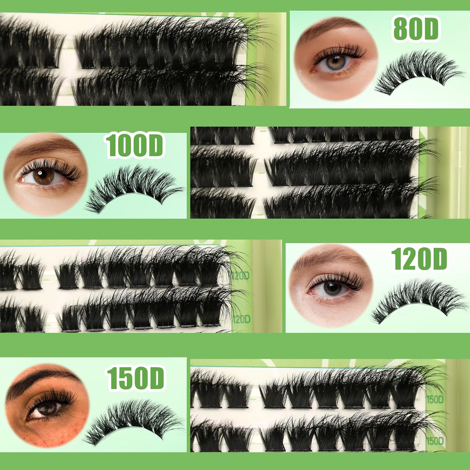 Premium lash clusters – The lashes cluster is made of upgrade synthetic fiber, soft, thickness, durability and lightweight, non irritating, give you more better make-up experience
