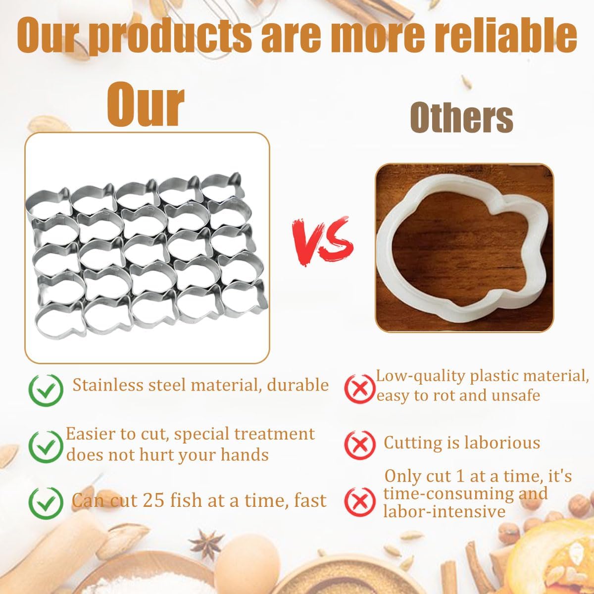 PRECISE CUTTING: Gold fish cutter sharp edges ensure clean cuts through dough, creating perfectly shaped fish crackers every time. Goldfish cutter its clear and uniform cutting effect allows you to effortlessly create perfectly shaped fish-shaped foods.