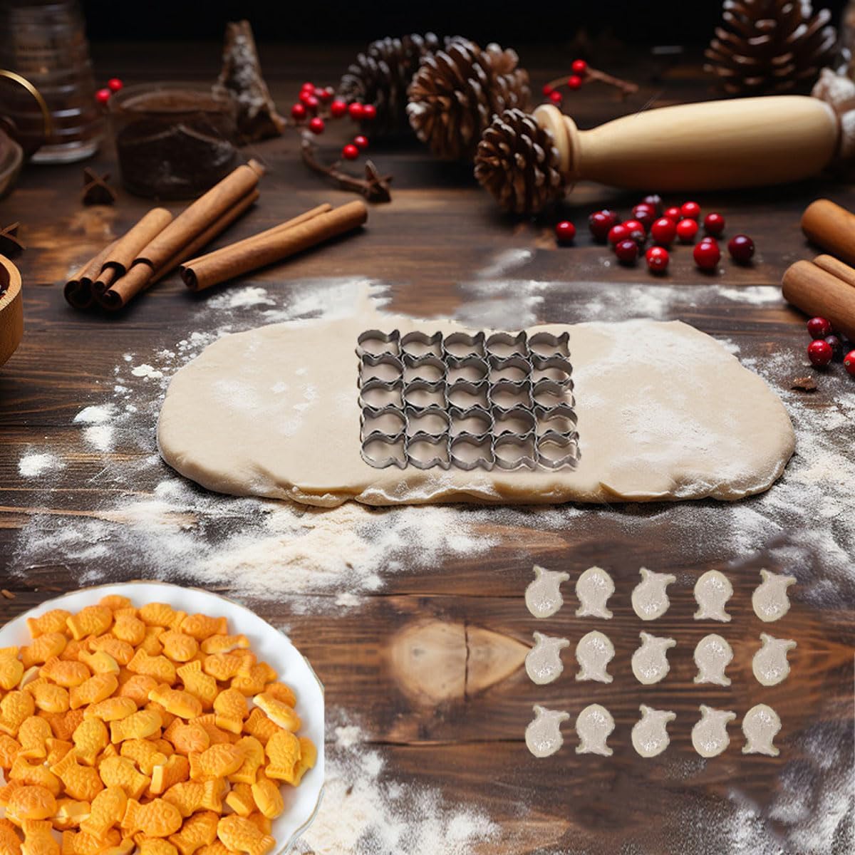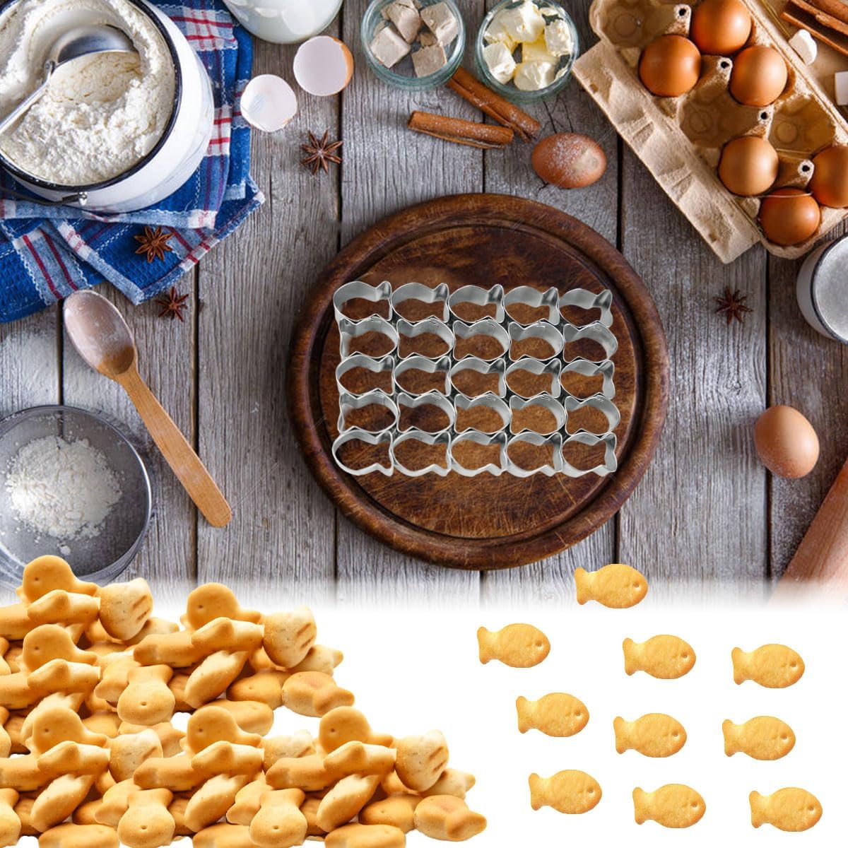 MULTI-CAVITY DESIGN: Features gold fish cookie cutter mold 25 fish-shaped cavities perfect for creating uniform, bite-sized crackers or cookies in a single press, gold fish cutter one cookie measures about 0.79*0.51*0.79 inches, proper size.