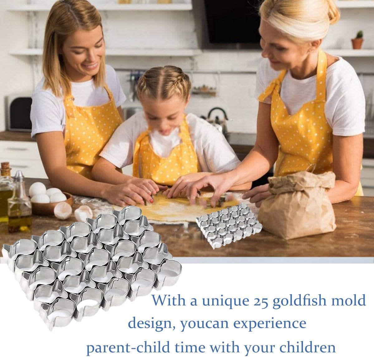Gold Fish Cutter 25 Cavity Cookie Cutter Mini Gold Fish Molds for Crackers, Stainless Steels Goldfish Cracker Cutter with Cleaning Brush