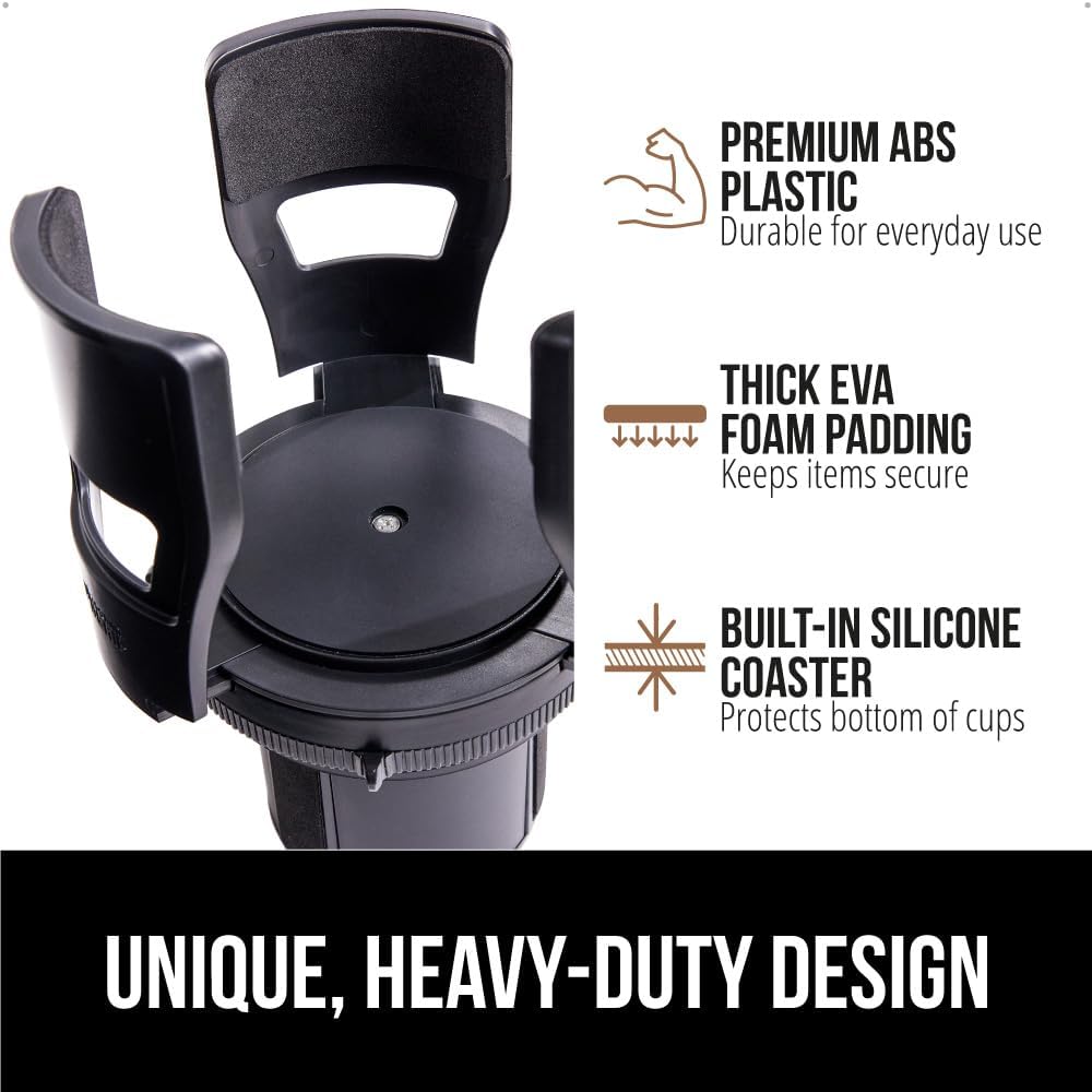 HEAVY DUTY, LONG LASTING CONSTRUCTION: built for daily use, heavy duty ABS plastic withstands wear and tear; thick EVA foam pads and silicone coaster inside cup holder help protect from scratches while also securely gripping to bottles
