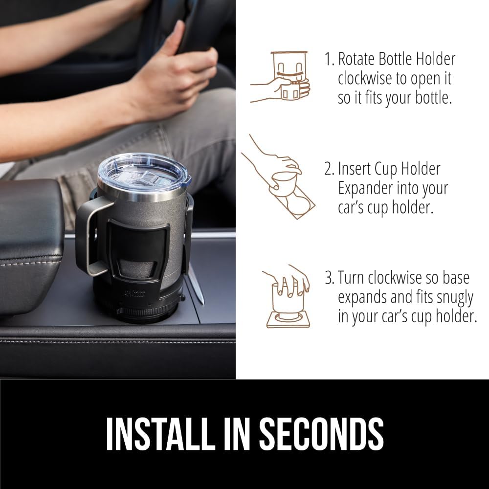 GORILLA GRIP Patent Pending Adjustable Car Cup Holder Expander, 2 PK, Keeps Water Bottle Secure, Expands to Fit 18 to 48 oz Bottles, Yeti, Owala, Stanley with Handle, Coffee Mug Insert for Cars, Black
