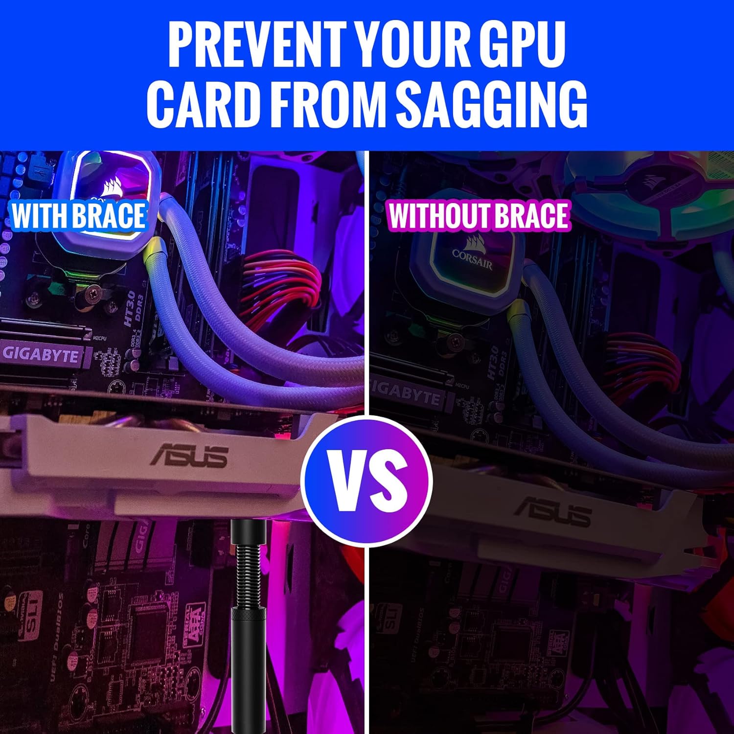 Does A Good Job of Preventing GPU Sag: The GPU support bracket can be used to avoid your graphics card from sagging or damaged due to the weight of the card. The appearance of our gpu stand is very unobtrusive and does not detract form the aesthetics of your computer.