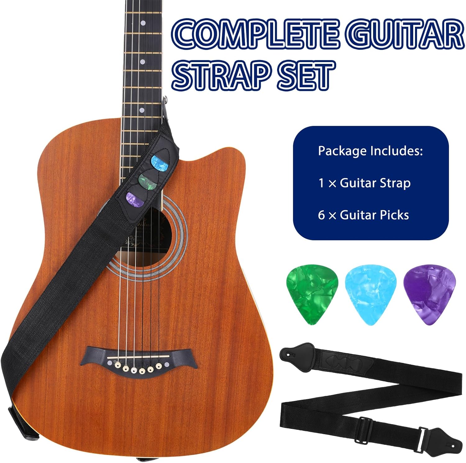 Packing list: 1 strap, 6 picks