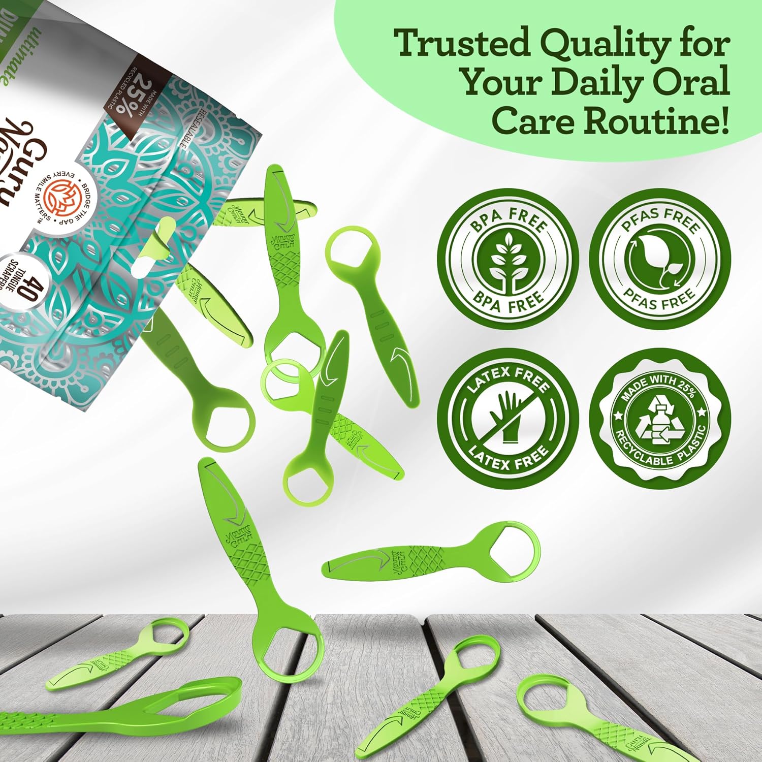 GuruNanda Disposable Tongue Scraper for Adults & Kids, Aligner Removal Tool (40 Ct) Dual-Function, BPA & PFAS-Free, Recyclable, Travel-Friendly, Promotes Fresh Breath, Easy to Use