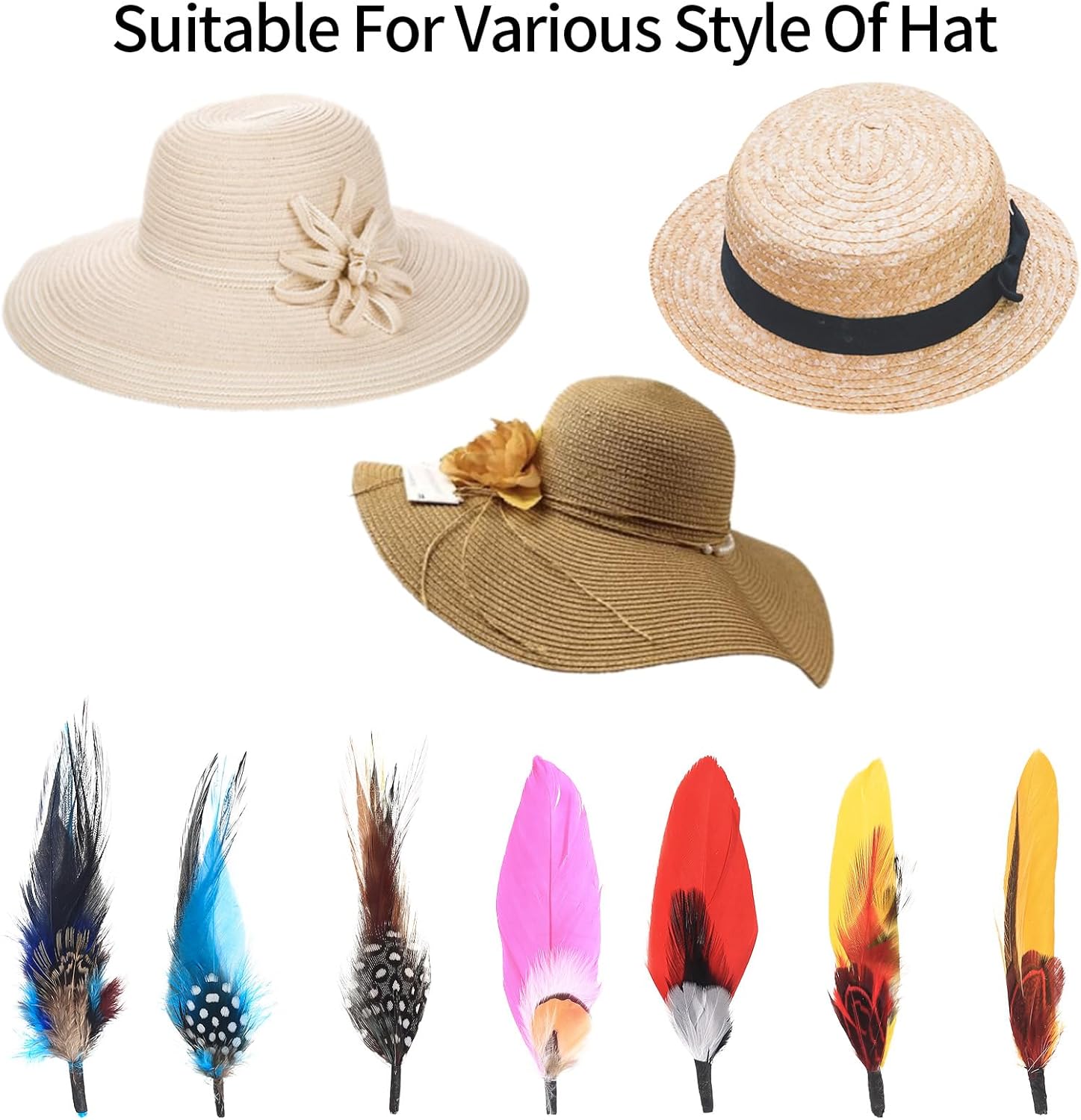 Wide Application: Not only used as hat feather decoration, but also can be used for DIY crafts, vase decoration, Christmas decoration, wedding party decoration, mask props making, etc.; also can be used to decorate headbands, hat decorations, flower arrangements, jewelry making, etc.
