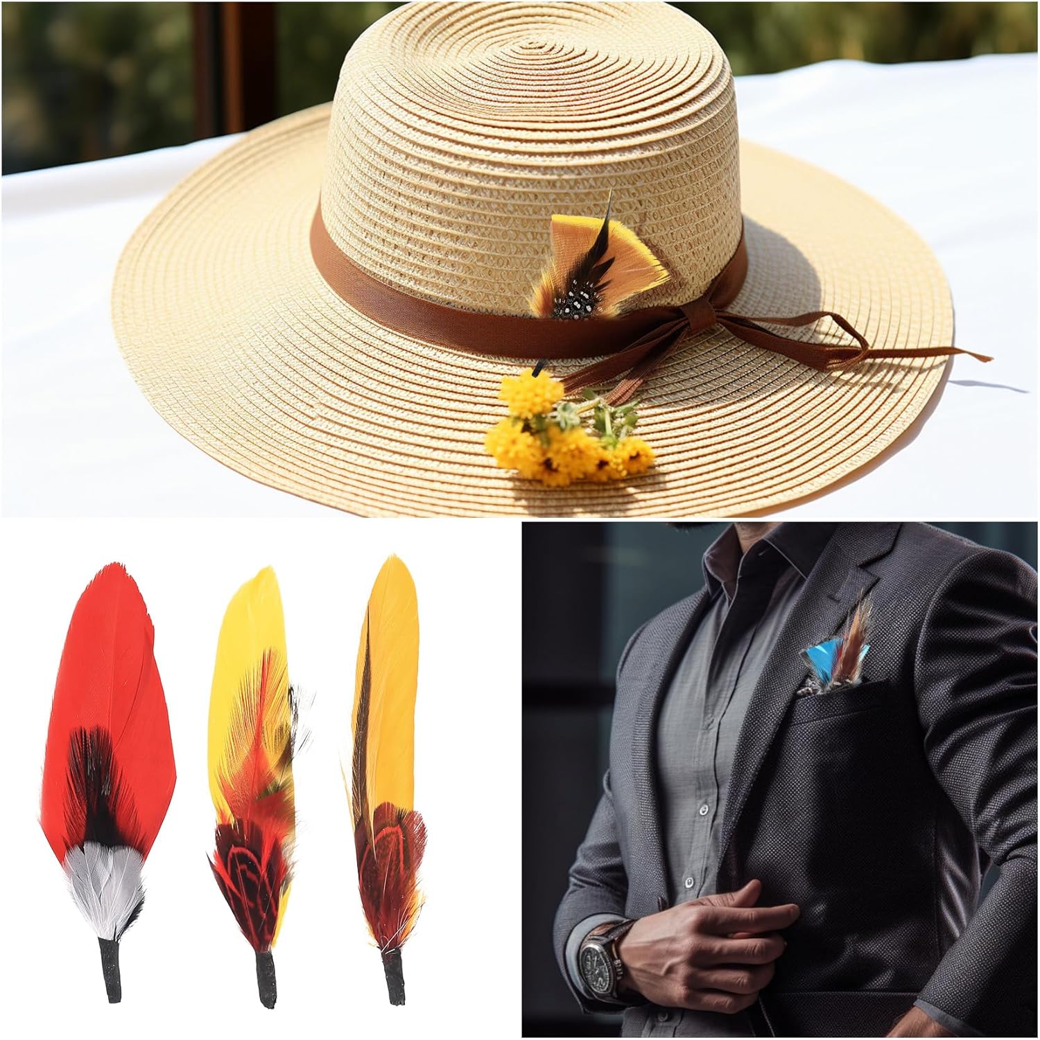 Hats Feathers: The feathers for mens hat can add decoration to your hat, very personal. The various feathers are versatile with any style of hat and will add color to your outfit.