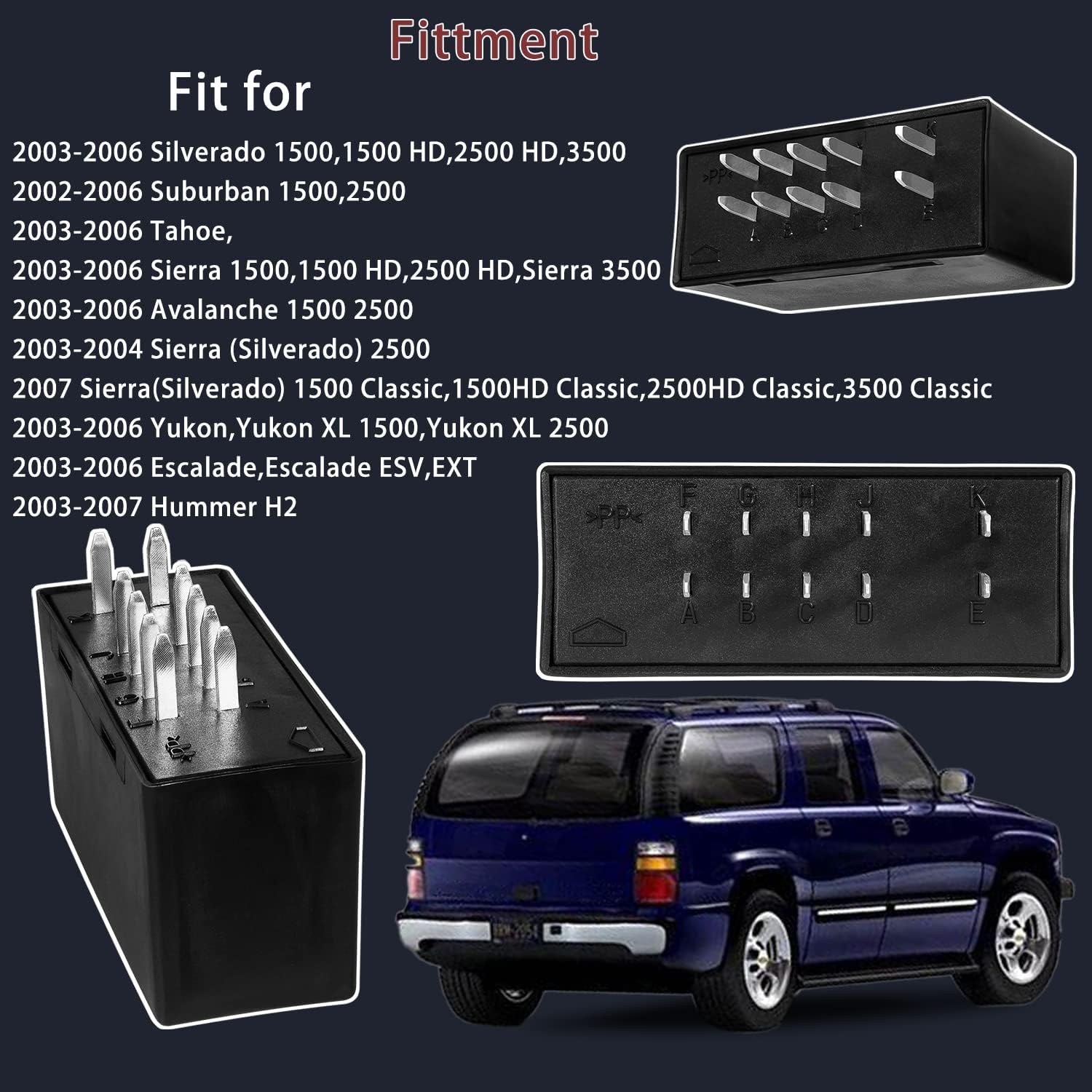 2003-2006 Silverado 1500,1500 HD,2500 HD,35002003-2006 Suburban 1500 25002003-2006 Tahoe2003-2006 Avalanche 1500 25002003-2006 Sierra 1500,1500HD,2500HD,Sierra 35002003 2004 Sierra ( Silverado) 25002007 Sierra (Silverado) 1500 Classic,1500HD Classic,2500HD Classic,3500 Classic2003-2006 Yukon,Yukon XL 1500,Yukon XL 25002003-2006 Escalade,Escalade ESV,EXT2003-2007 Hummer H2