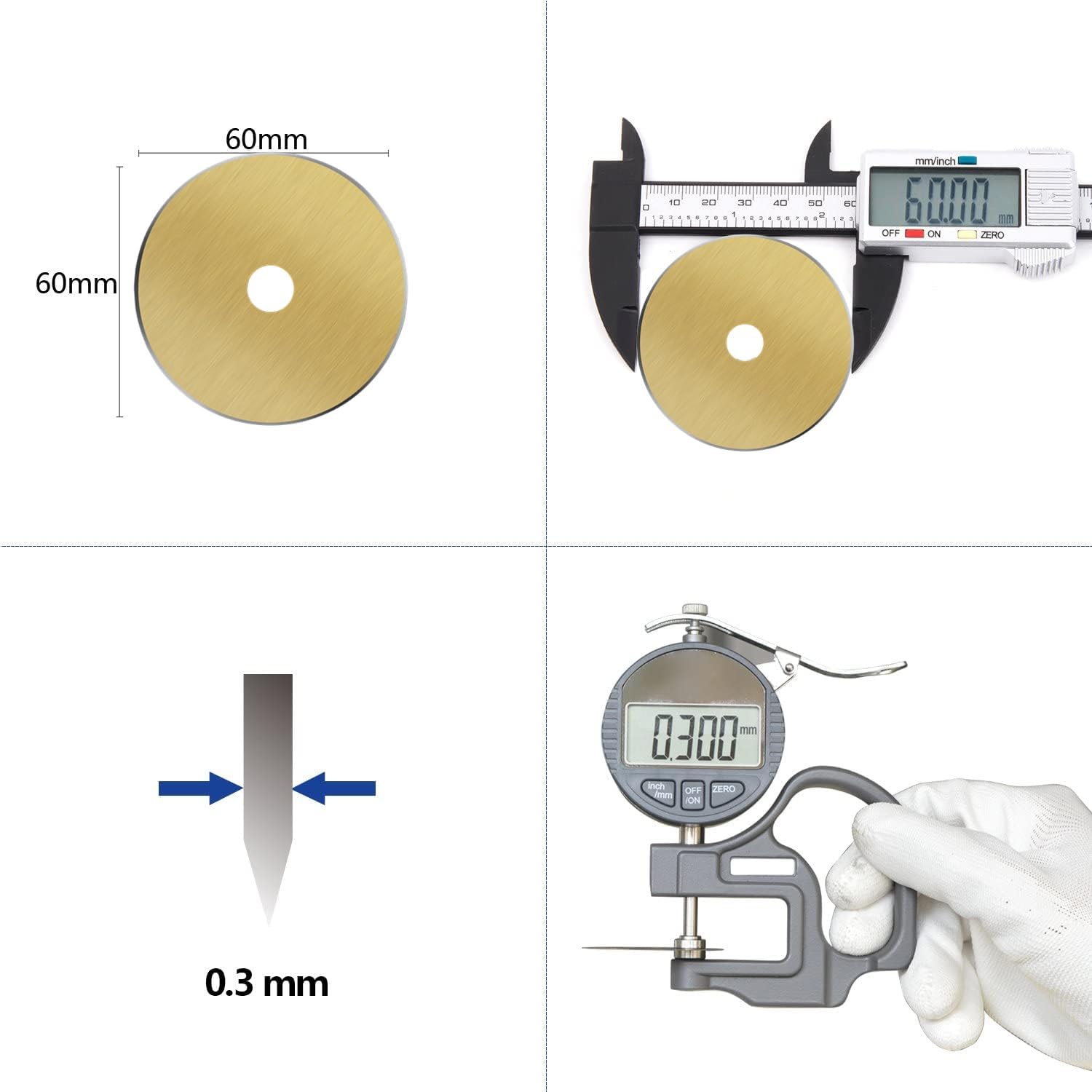 [Blades Material] Headley Tools 60mm titanium coated rotary cutter blades are made of high quality Japanese steel (SKS-7), has a long service life and a long-lasting sharp edge.Titanium coated on the surface makes the blade resistant to corrosion and rust.