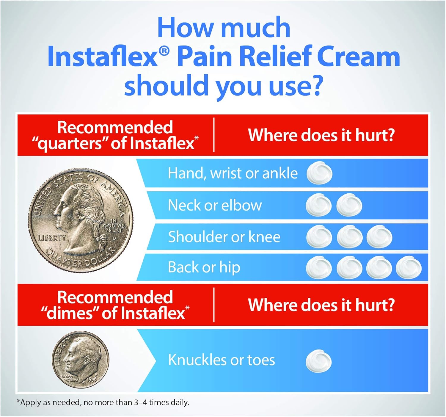 Instaflex Extra Strength Pain Relief Cream contains a proprietary blend of essential oxygenated oil with more menthol to provide fast-acting, penetrating, extra strength relief for your toughest aches and pains, even arthritis.