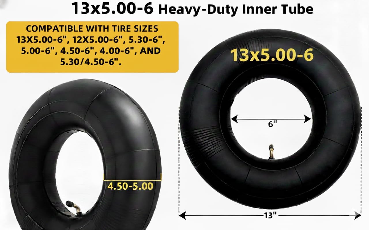 Universal Fit for Yard Gear: Perfectly sized for 13×5.00-6, 13×5-6, 13x5x6 & 5.00-6 tires — seamless replacement for Razor Dirt Quad go-karts, ATVs, lawn mowers & snow blowers.