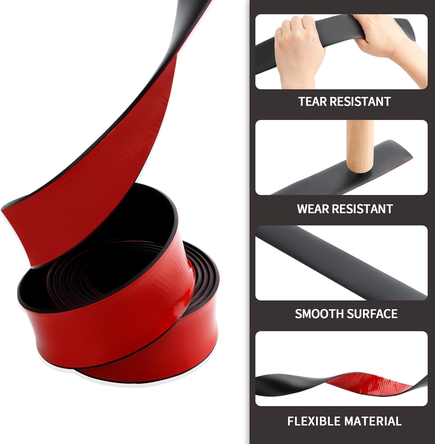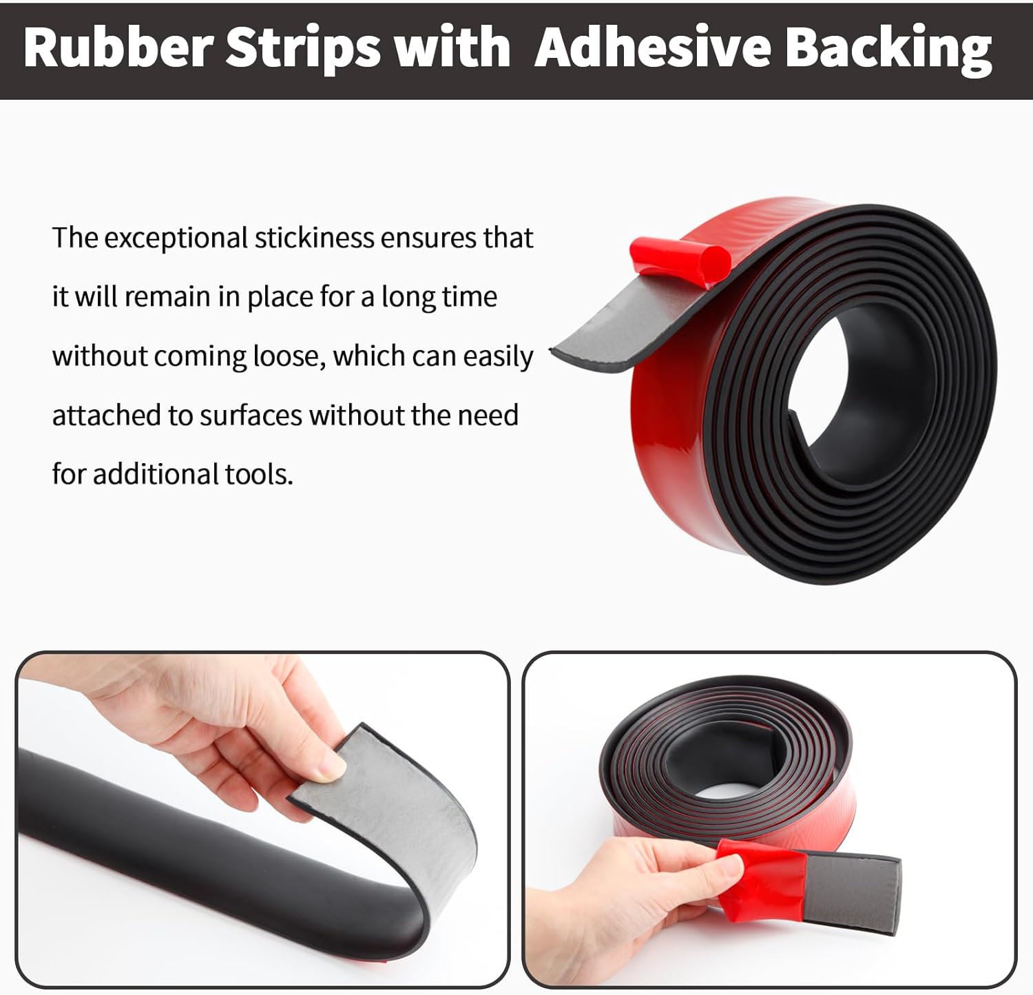 【Quality Rubber Material】The rubber strip is made from premium solid rubber material, ensuring it remains tough and durable even under heavy weight. Compared to ordinary sponge or foam strips, our adhesive backed rubber are more tear-resistant and long-lasting.