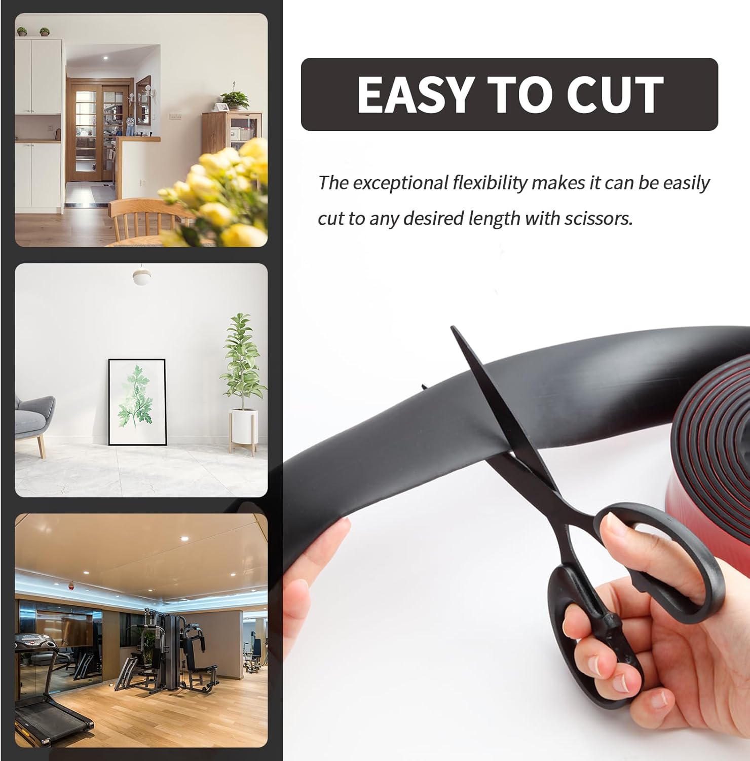 【Easy to Cut】The rubber padding with adhesive can be easily cut to any desired length with scissors. Their exceptional flexibility allows them to seamlessly conform to any surface or shape, making them the perfect solution for tight spaces or irregular surfaces.