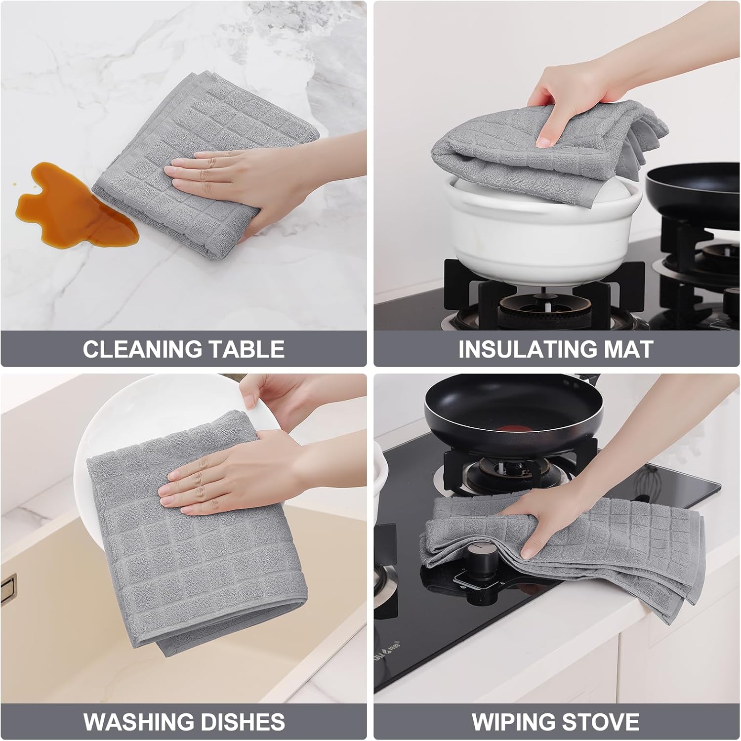 Super Absorbent: With a high-density 390 GSM terry construction, these kitchen hand towels outperform paper towels, absorbing spills and messes. Keep your kitchen clean, sanitary, and free from unnecessary waste
