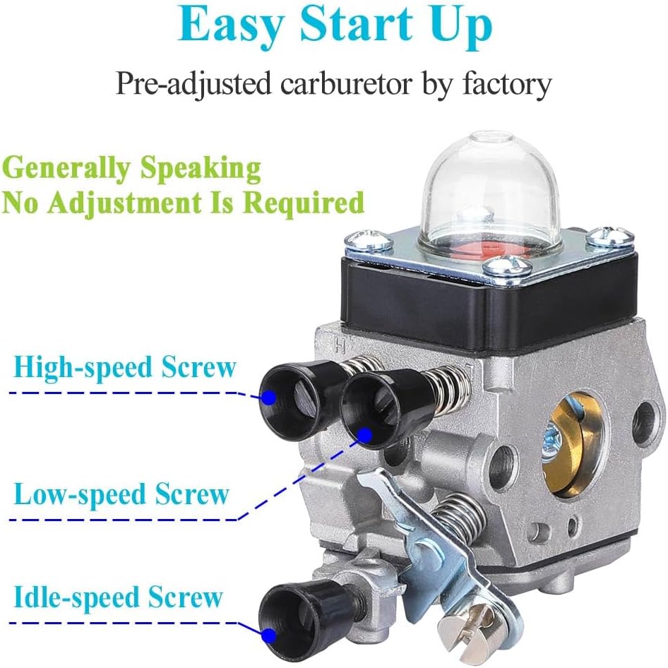 Easier Install and Start Up: Rebuild as the way your old carburetor fall off, just a minor idle adjustment, a simple and fast repair pleasure. You will be pleasantly surprised to find that a new engine come back, trimmer will run like a champ.